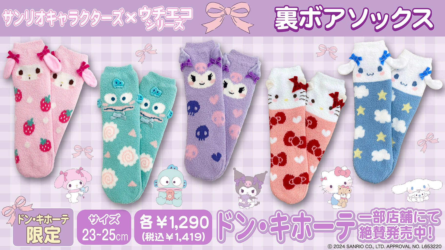 - キャラクターラインナップ(全5種) マイメロディ、ハンギョドン、クロミ、ハローキティ、シナモロール