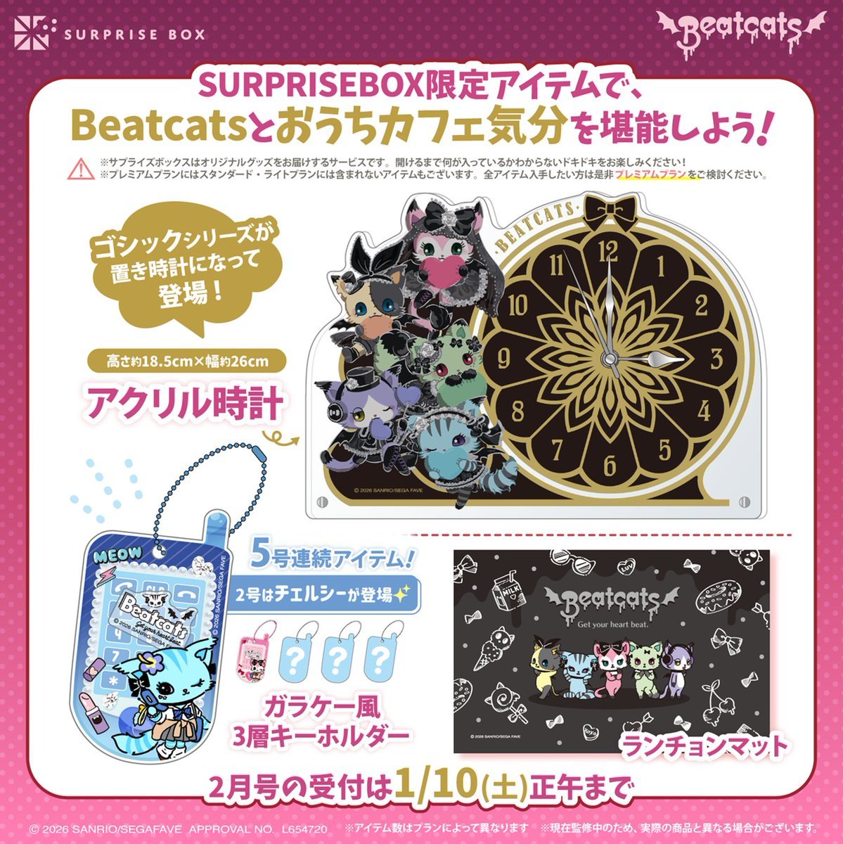 限定アイテムが定期便で届く サプライズボックス🎁 📢Beatcats 2月号では… 『Beatcatsとお家カフェ気分を堪能しよう☕』 ✅https://t.co/brq773SPW3 インテリアとしても映える「アクリル時計」や 「ランチョンマット」など お家でまったり過ごすのに ぴったりなアイテムが盛りだくさん🏠