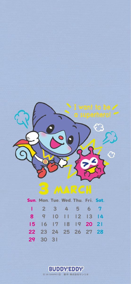 3月だね! 3月のエディは『スーパーヒーロー』になりたいと思ってるんだ! いろんなウィルスからみんなを守りたいからだよ☆ エディにまかせて!! Leave it to me! #バディエディ #BUDDYEDDY #壁紙