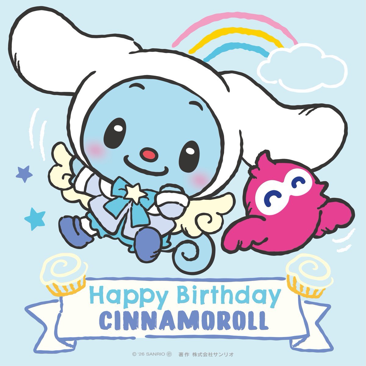 シナモンお誕生日おめでとう! エディ:シナモンみたいにエディもお空を飛んでみたいな☆ ピタ:ピタも小鳥さんになったら一緒に飛べるかな〜? #バディエディ #BUDDYEDDY #シナモロール @cinnamon_sanrio