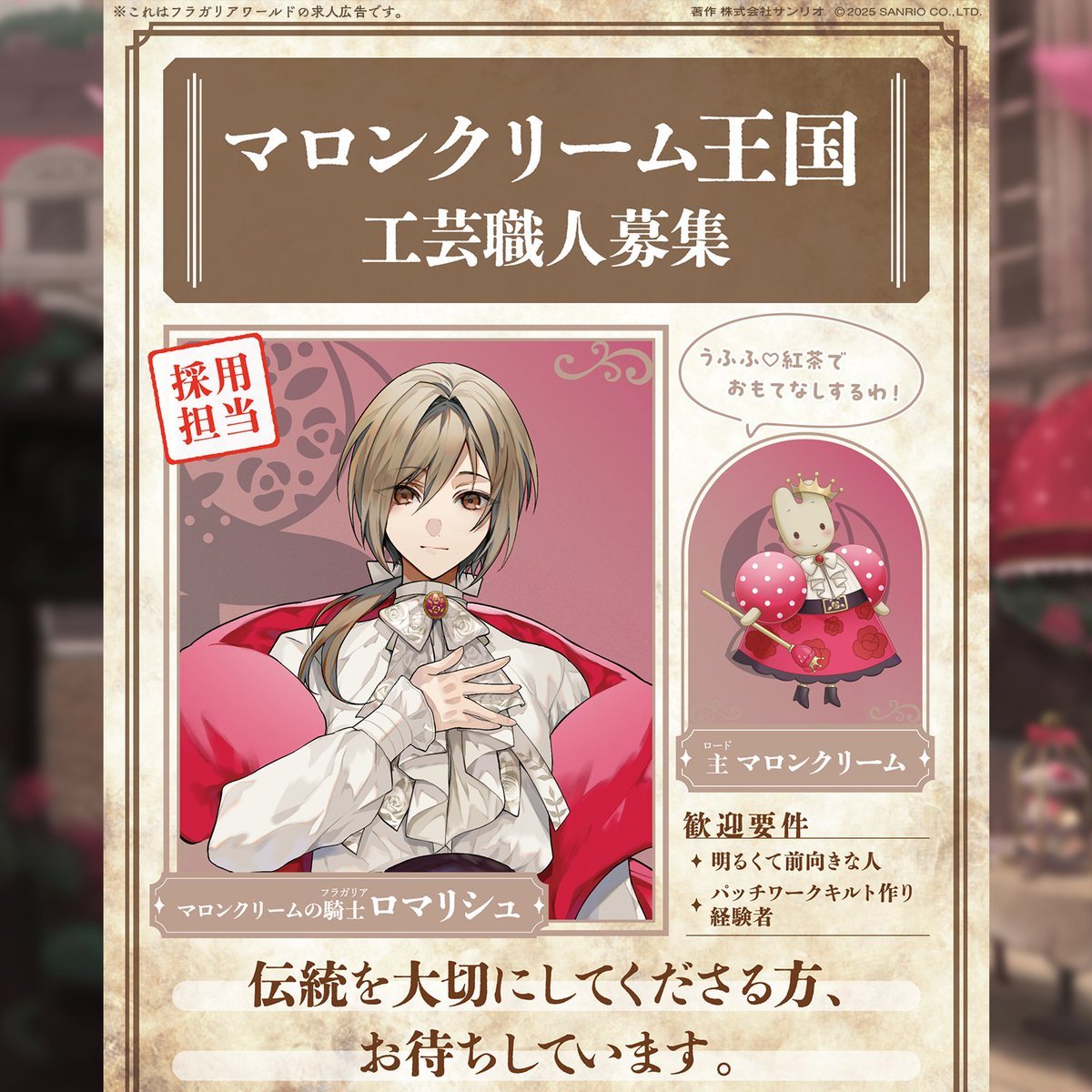 ◤#フラガリアワールド求人募集◢ 〜赤の大陸〜 🪡マロンクリーム王国 ✦ 工芸職人 🍱KIRIMIちゃん.王国 ✦ お弁当屋さん 🏖️ウサハナ王国 ✦ 海の家スタッフ どの王国が気になる?💭 まずはフラガリアワールドについて知ろう! https://t.co/cIrinVKp6R #フラガリアメモリーズ #pr