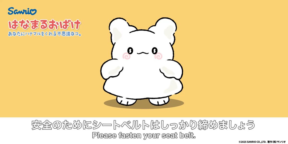 【🚖今週のシートベルト動画】 「はなまるおばけ」の“まるまる”が登場✨ @marumaru_sanrio “まるまる”が乗客にシートベルト着用を呼びかけるボイス付きの特別映像👻💮 タクシーに乗車する際はシートベルト着用をお忘れなく! #はなまるおばけ