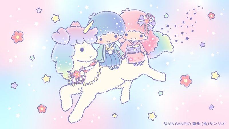 リトルツインスターズ 星のお茶会 壁紙(春)