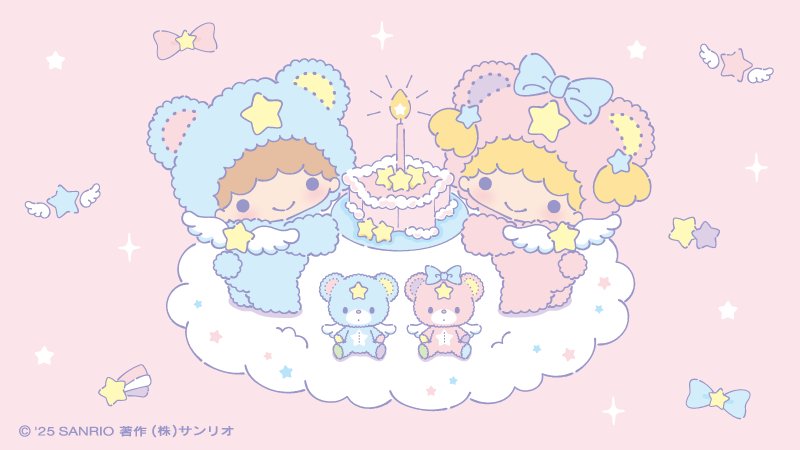 リトルツインスターズ 星のお茶会 壁紙(夏)