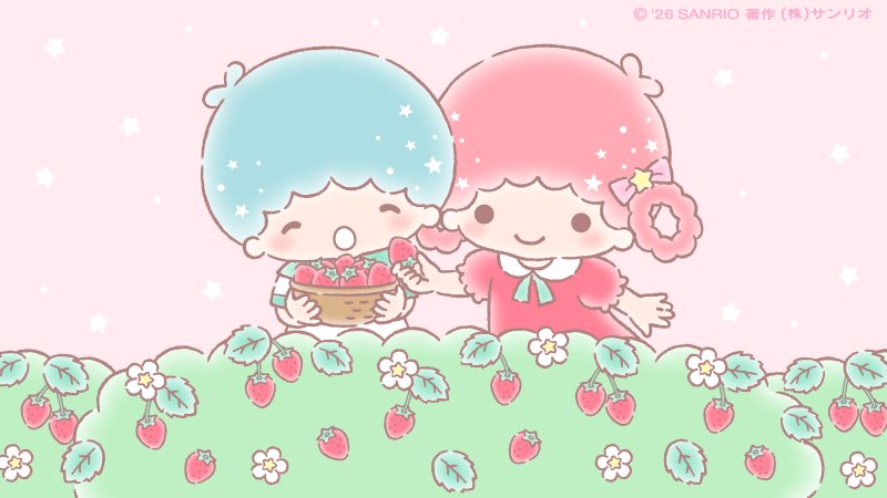 リトルツインスターズ 星のお茶会 壁紙(春)