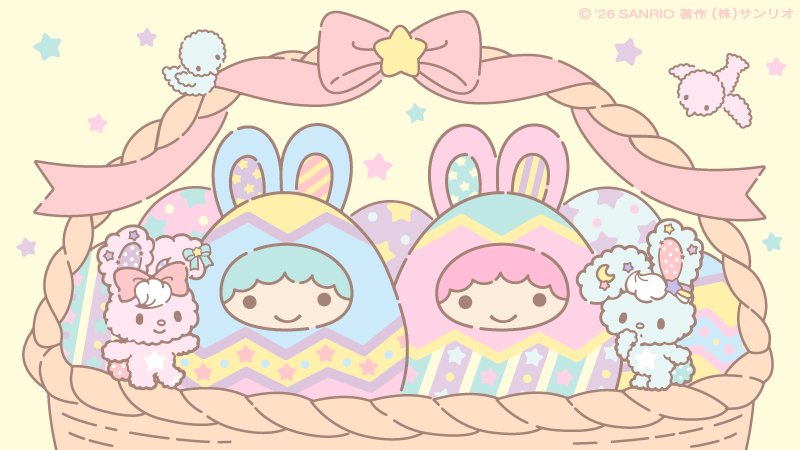 リトルツインスターズ 星のお茶会 壁紙(春)