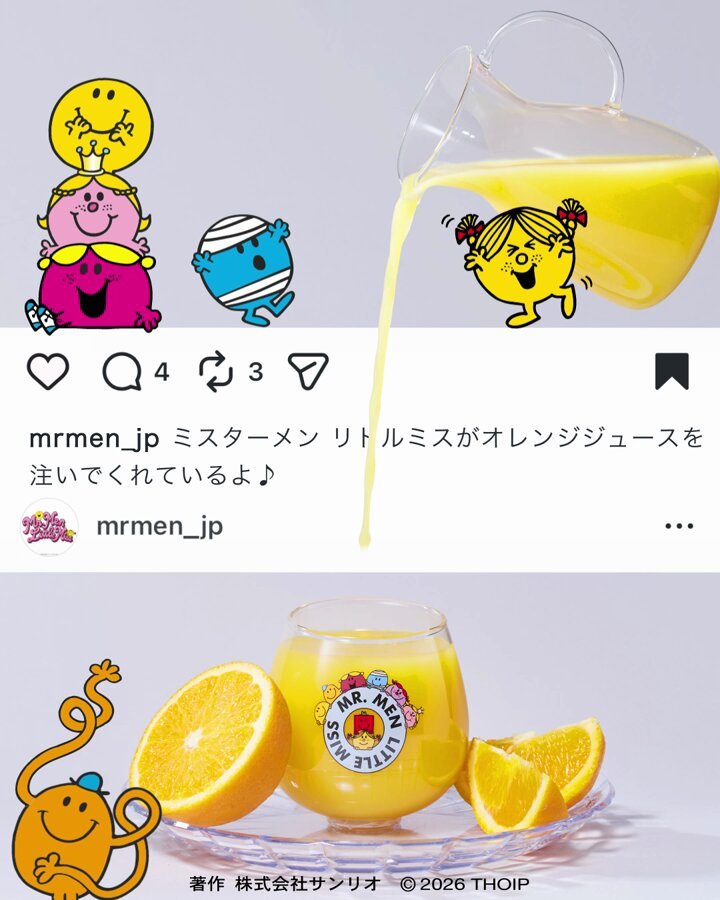 リトルミス サンシャインがオレンジジュースを注いでくれているよ🥤🍊 みんなも、なんだかうれしそう!?✨ 可愛いと思ったらコメントで教えてね💬