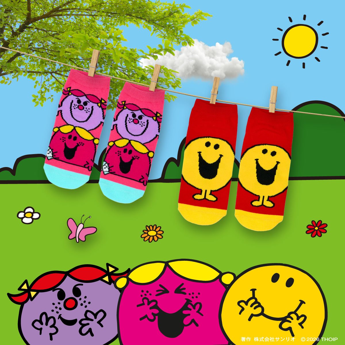 履くだけで気分が上がる“スニーカーソックス”✨ いつもご機嫌な ミスター ハッピーと、おしゃべり上手なリトルミス チャターボックス、ちょっぴりやんちゃなリトルミス バッドが足元に大集合💛💗💜