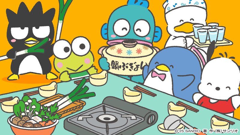 ハンギョドン「今日は鍋パだよ〜!」 サム「わ〜い!やった〜!」 ポチャッコ「わくわーく♪ 」 #はぴだんぶい