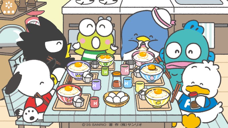 けろっぴ「みんな、おはよー!」 サム「今日もおいしくいただきまーす!」 #はぴだんぶい