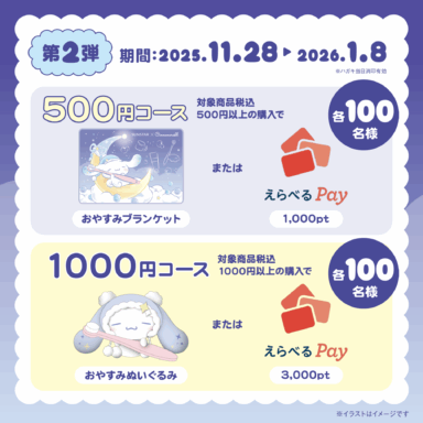 「おやすみブランケット」または「えらべるPay 1,000pt」 - 対象商品を税込み1,000円以上ご購入