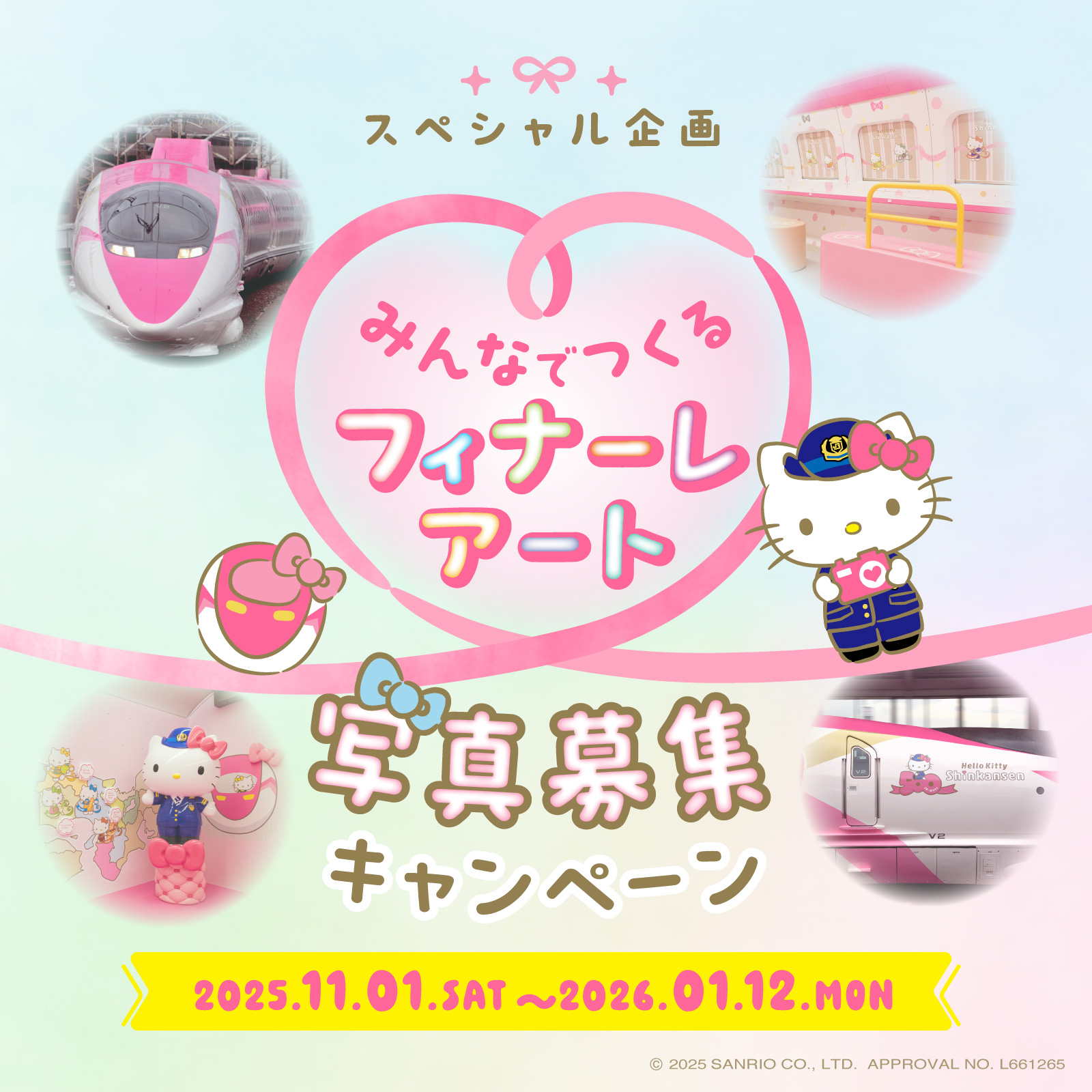 入選写真を使ったフィナーレアートは、スペシャルサイトやハローキティ新幹線車内、JR西日本の主要駅などでお披露目されるよ♪