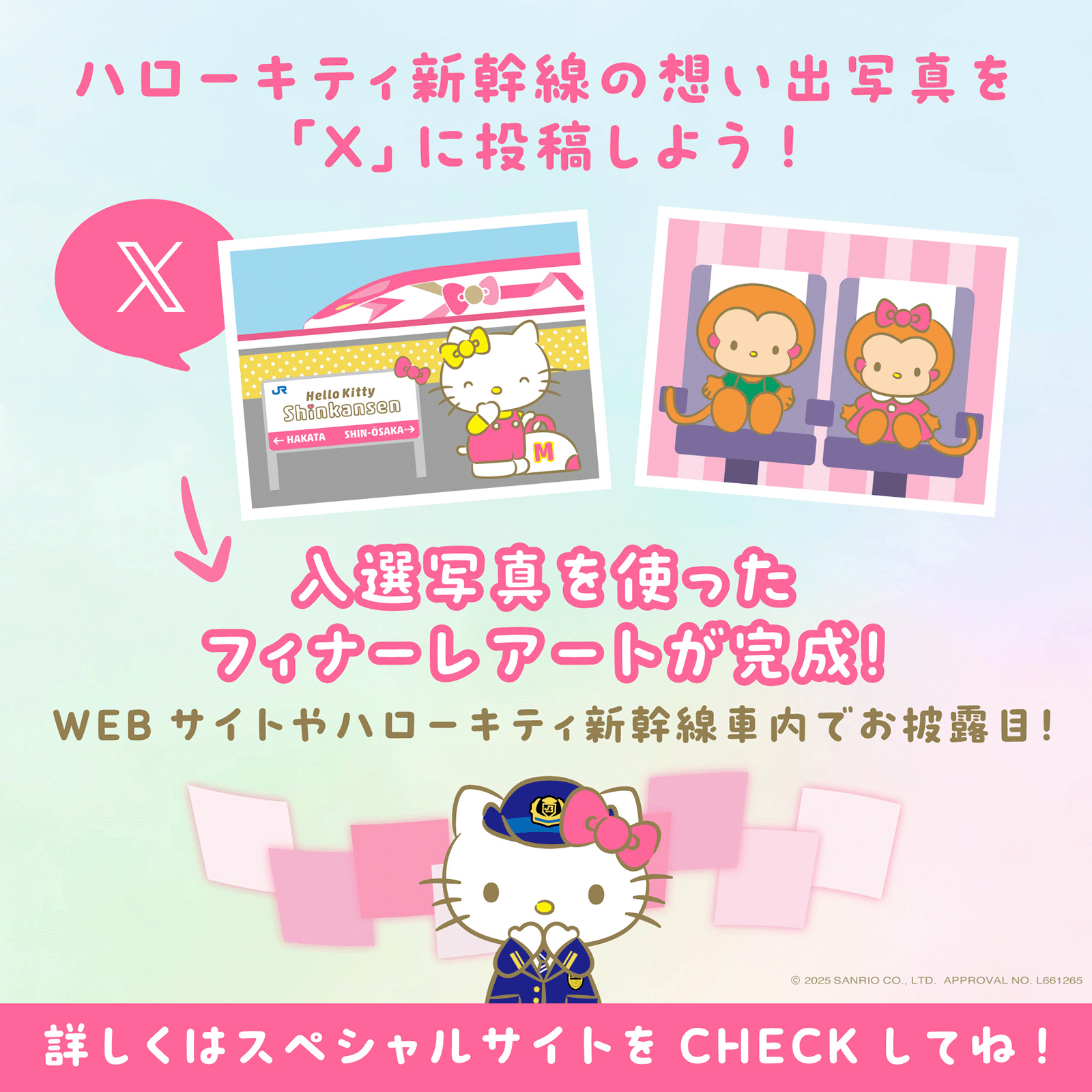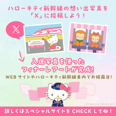 ハローキティ新幹線との想い出写真をX(旧Twitter)に投稿してね♡