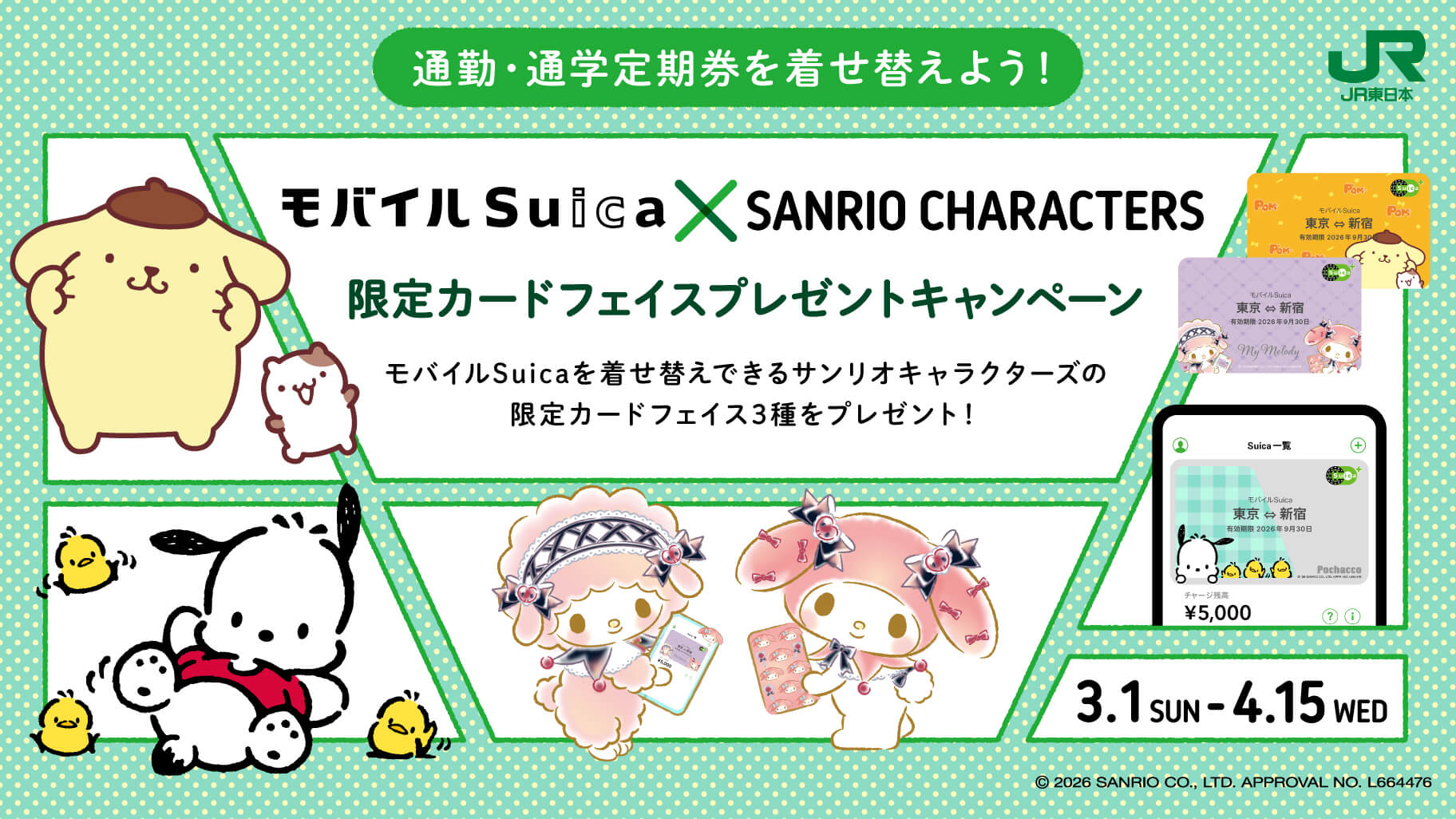 モバイルSuicaで通勤・通学定期券をサンリオキャラクターズに着せかえよう♪