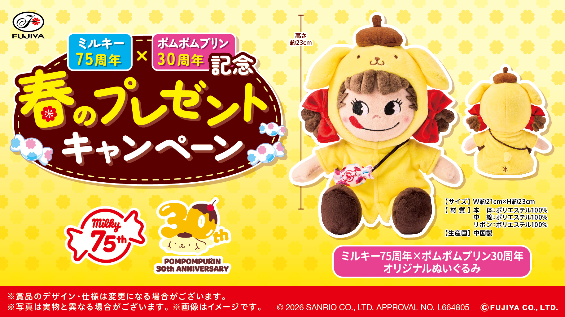 ミルキー75周年とポムポムプリン30周年を記念した春のキャンペーンを実施中だよ♪