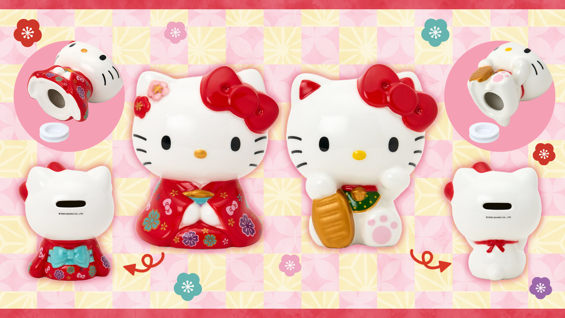 縁起の良い和風デザインがポイントのハローキティ貯金箱。年末ギフトにも◎