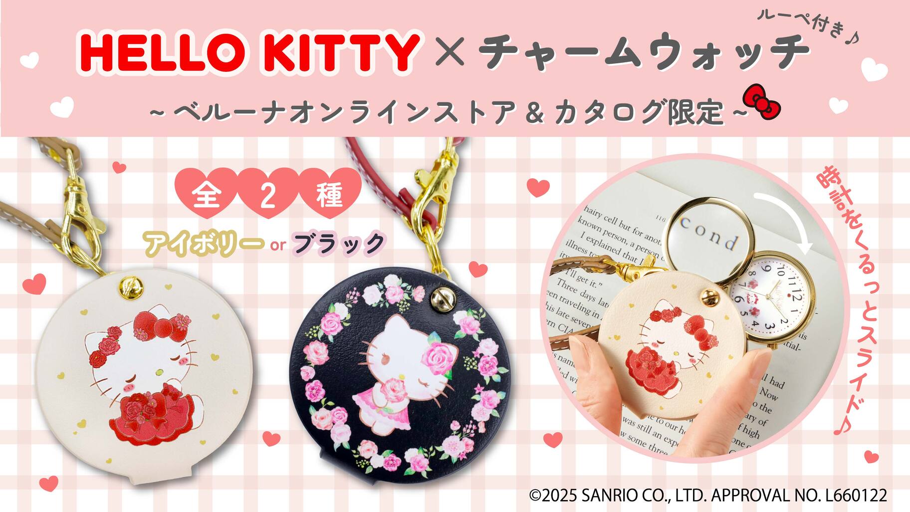ベルーナオンラインストア&カタログ限定♪ ハローキティのオシャレなルーペ付きチャームウォッチが登場! キュートなアイボリーとシックなブラックの2色展開! くるっとスライドすると、時計とルーペが出てくるよ☆ チャームとしてバッグなどに付けてもかわいい♡ ぜひチェックしてね♪