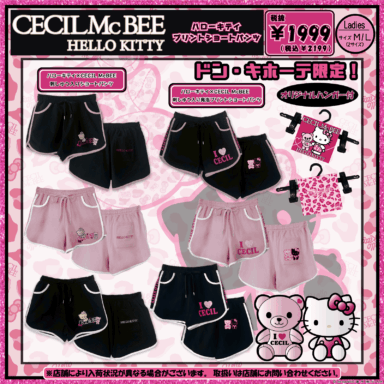 • ハローキティ×CECIL McBEE 刺しゅう入り発泡プリントシヨートパンツ(全3種) 各2,199円