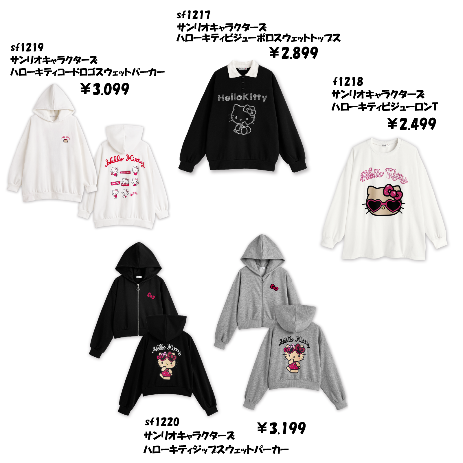 サンリオキャラクターズ ハローキティジップスウェットパーカー(全2色) 各3,199円