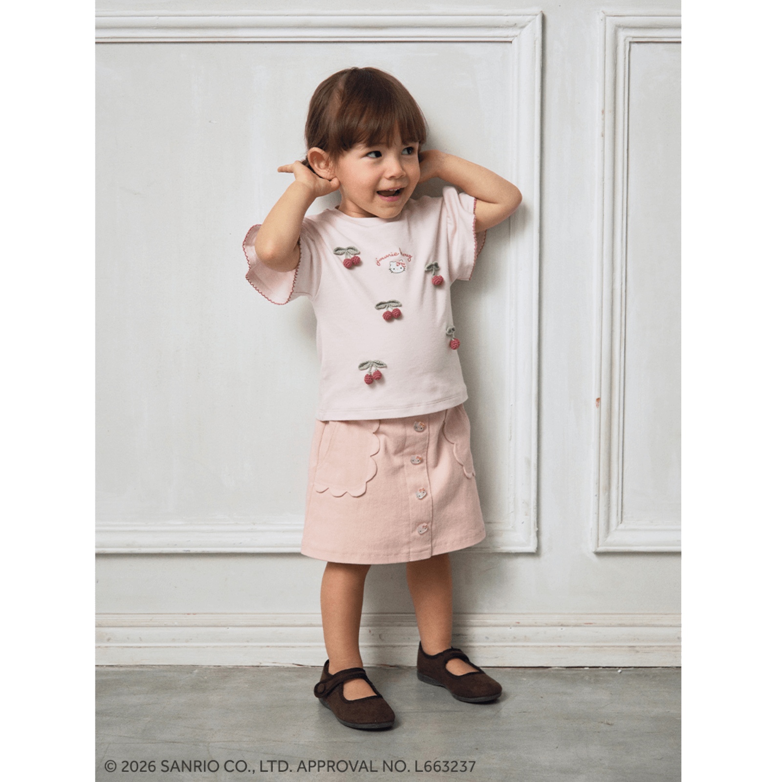 【HELLO KITTY】オーガニックコットン ニットモチーフ付き半袖Tシャツ