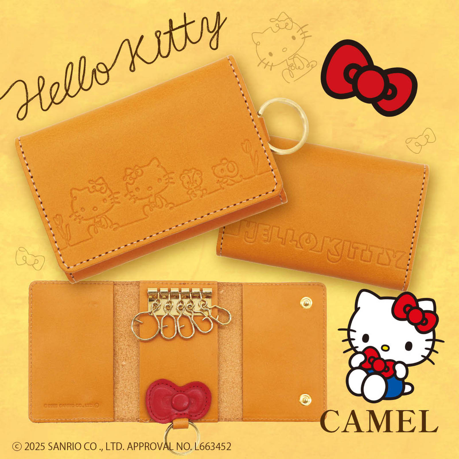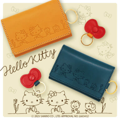 革製品メーカー「ナダヤ」から、ハローキティのキーケースが新登場☆ ひとつながりの線で描かれたキティたちのデザインがとってもかわいいね♡ 取り外しできる赤いリボンのキーリングもポイントだよ! 「ヌメ革」で、使用していくうちにツヤが出るので変化も楽しめちゃう☆ 12月5日(金)から、ナダヤオフィシャルショップやナダヤ(旧ラ・マーレ)楽天市場店で発売! ぜひチェックしてね♡