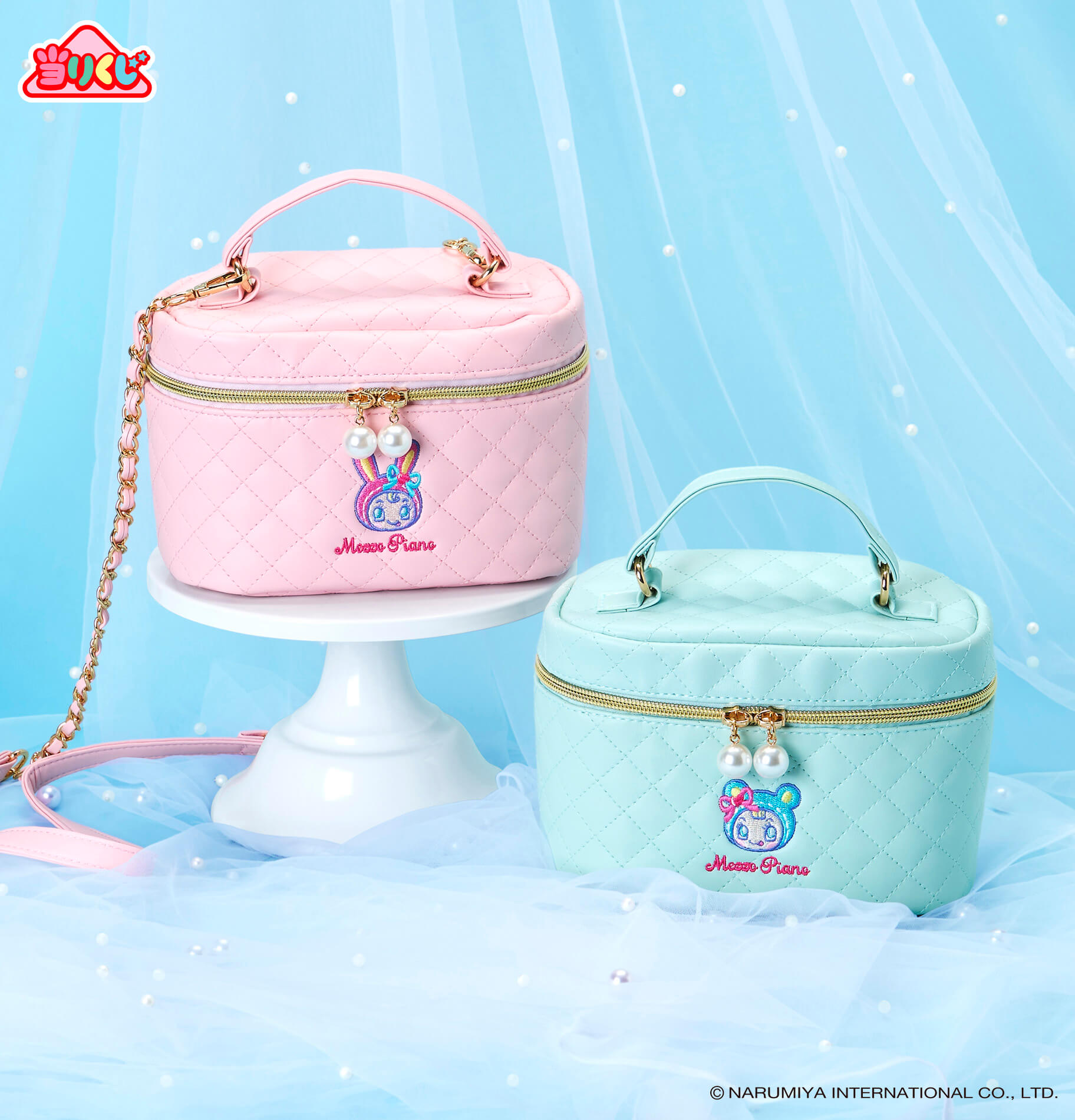 【左から:①バニティポシェット ピンク / ②バニティポシェット ブルー】