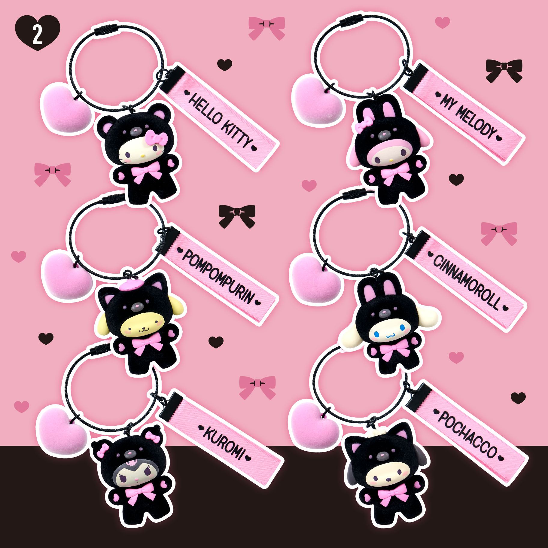 ファッションに取り入れやすい黒をベースに、アクセントのリボンにくすみピンクを効かせた着ぐるみデザインのシリーズ。