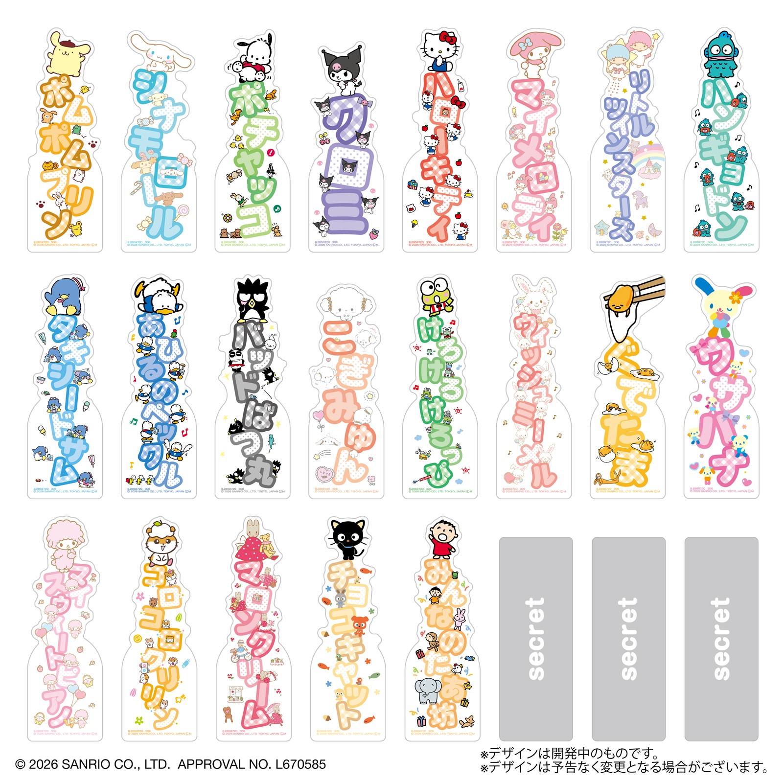 ブックマークコレクション サンリオキャラクターズ おなまえPOP(全24種、うちシークレット3種)