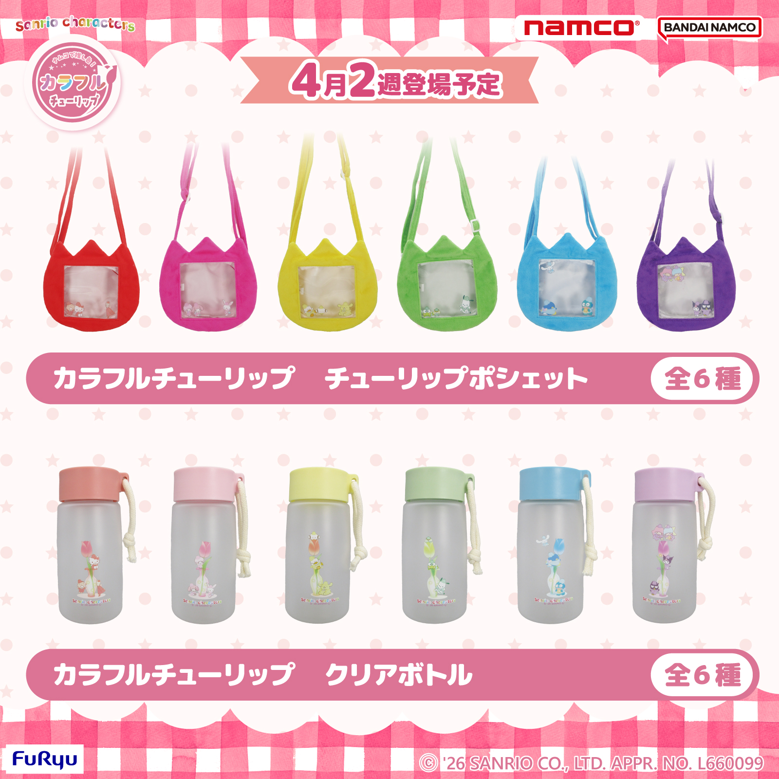 チューリップ形のポシェットや、カラフルな衣装のぬいぐるみなど全7アイテムがラインナップ☆