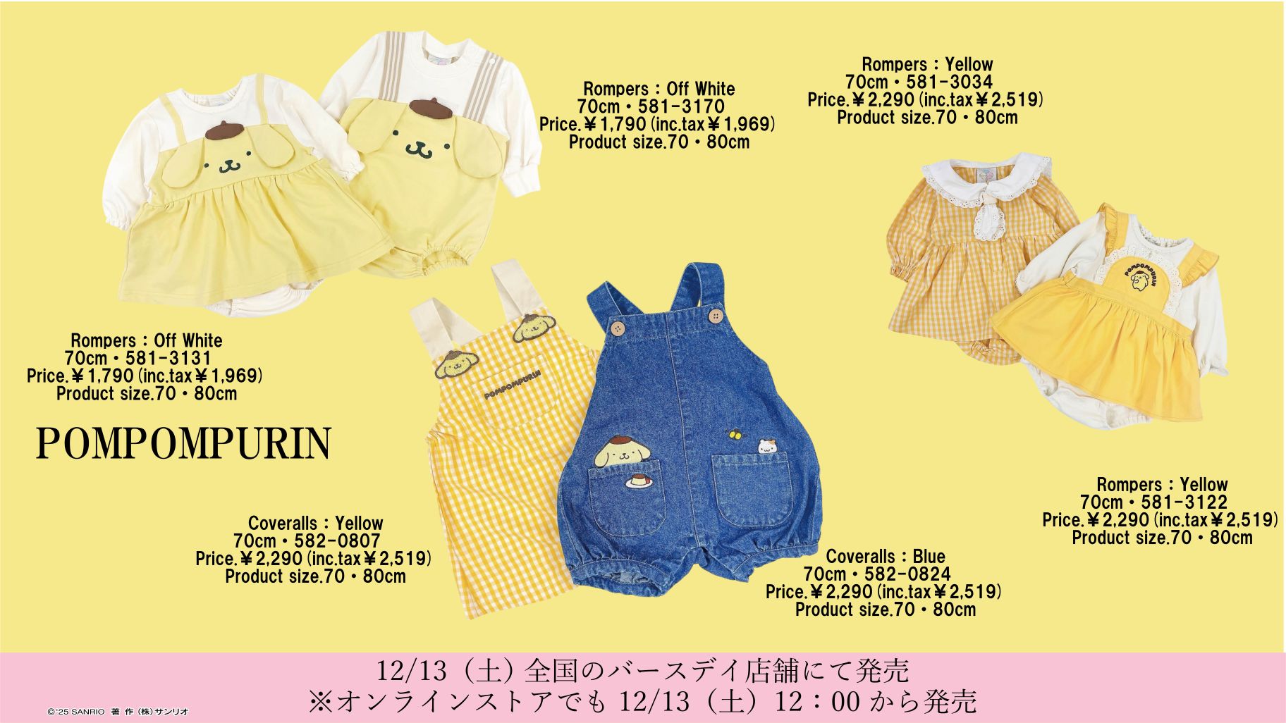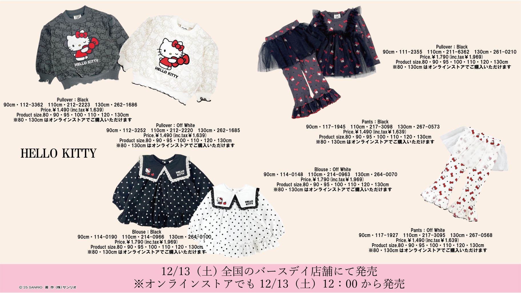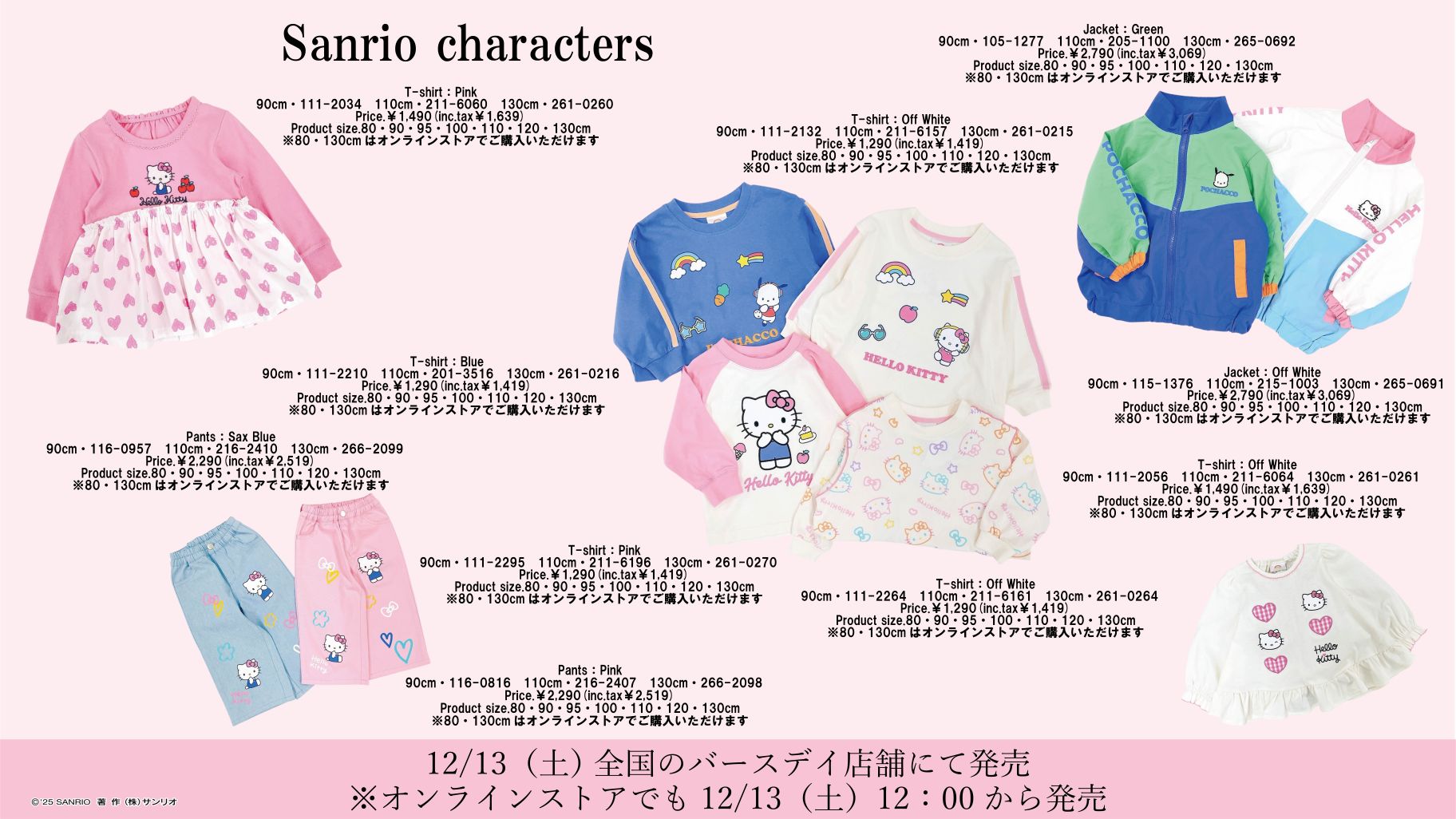 12/13(土)〜バースデイにサンリオキャラクターズの新作キッズアパレルが登場!