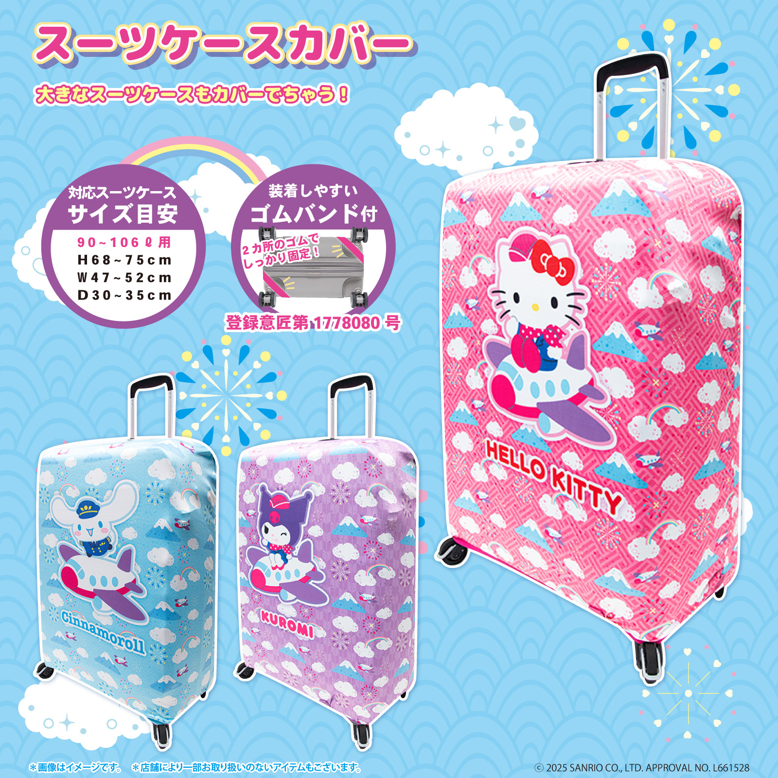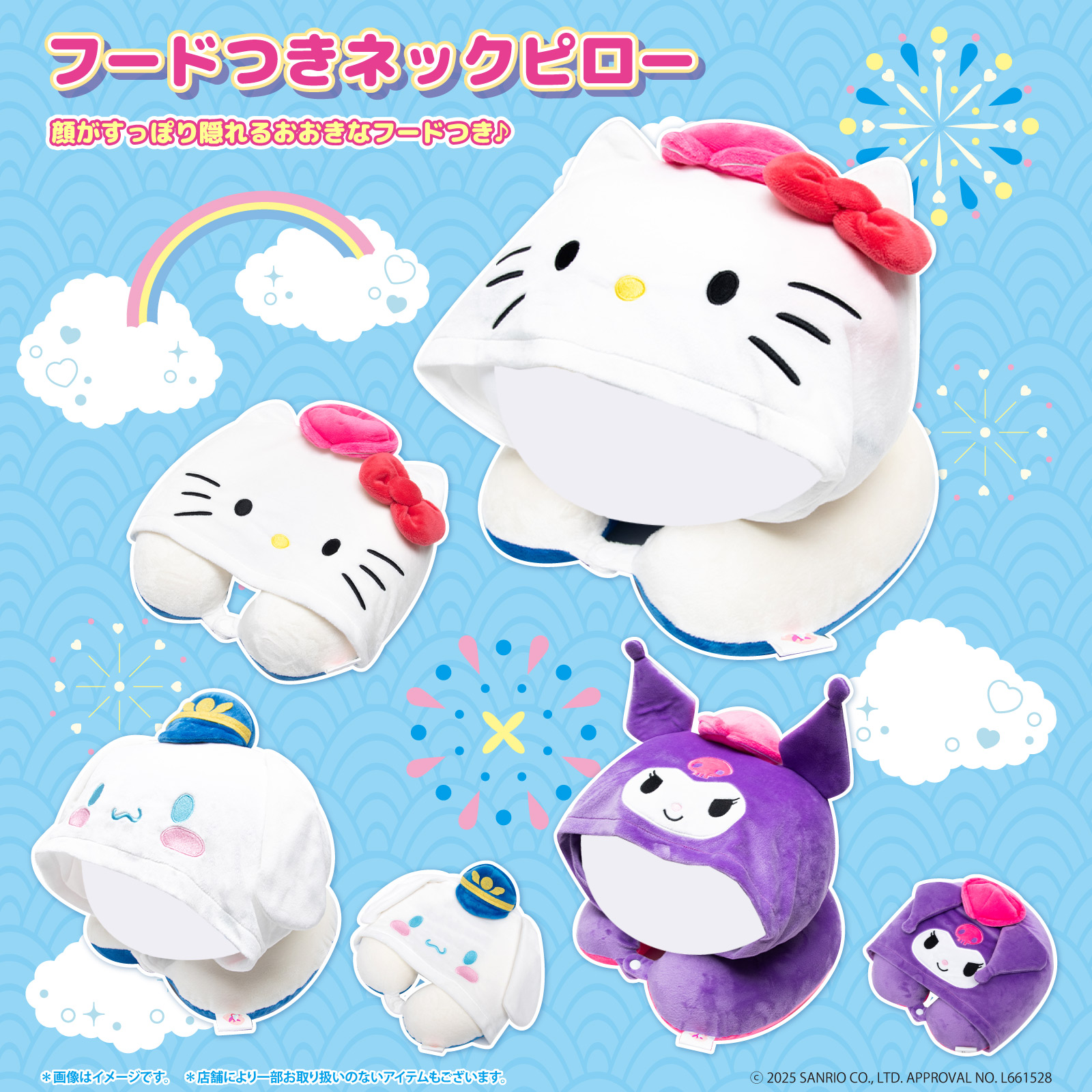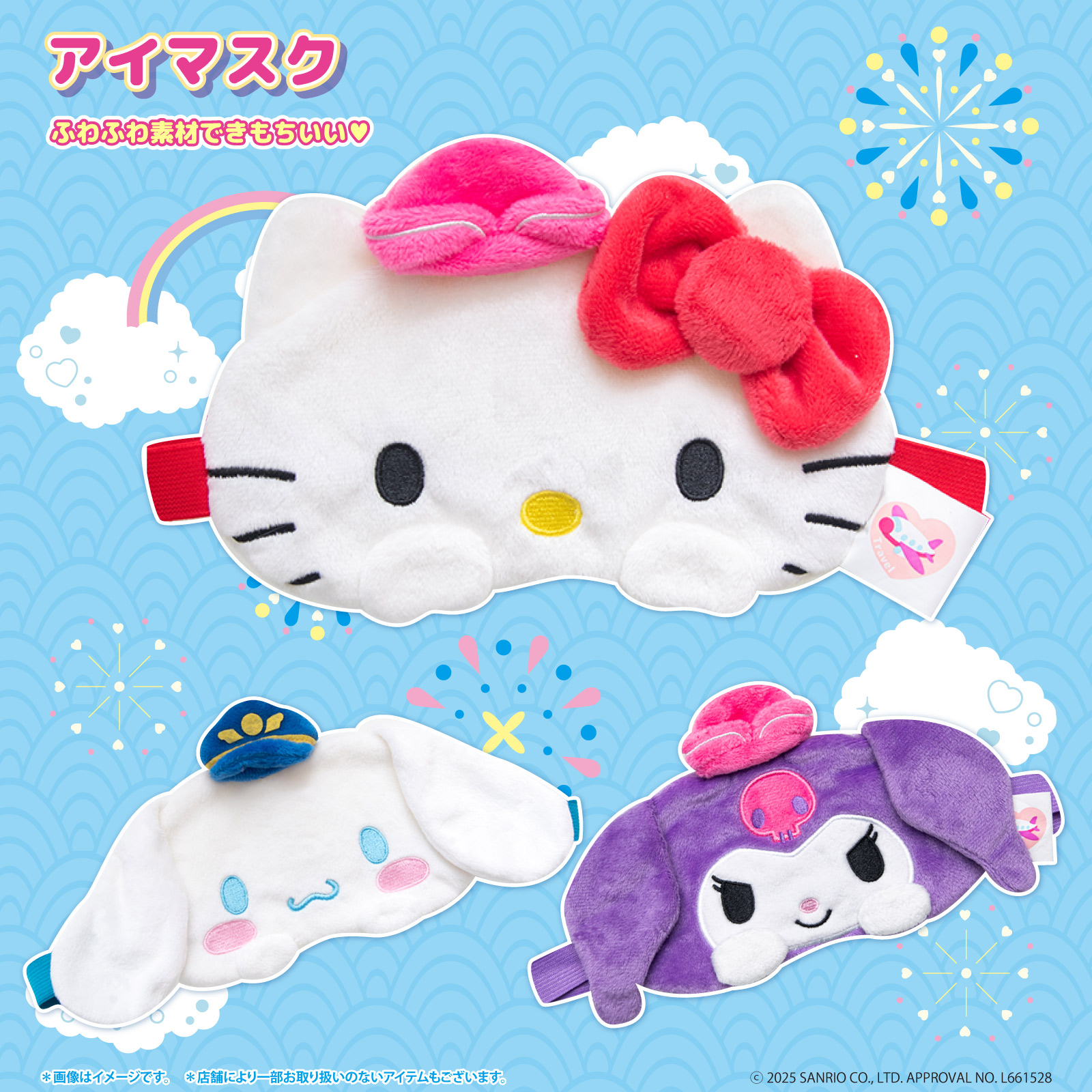 ■キャラクターラインナップ(全3キャラ・アイテム共通) ハローキティ、シナモロール、クロミ