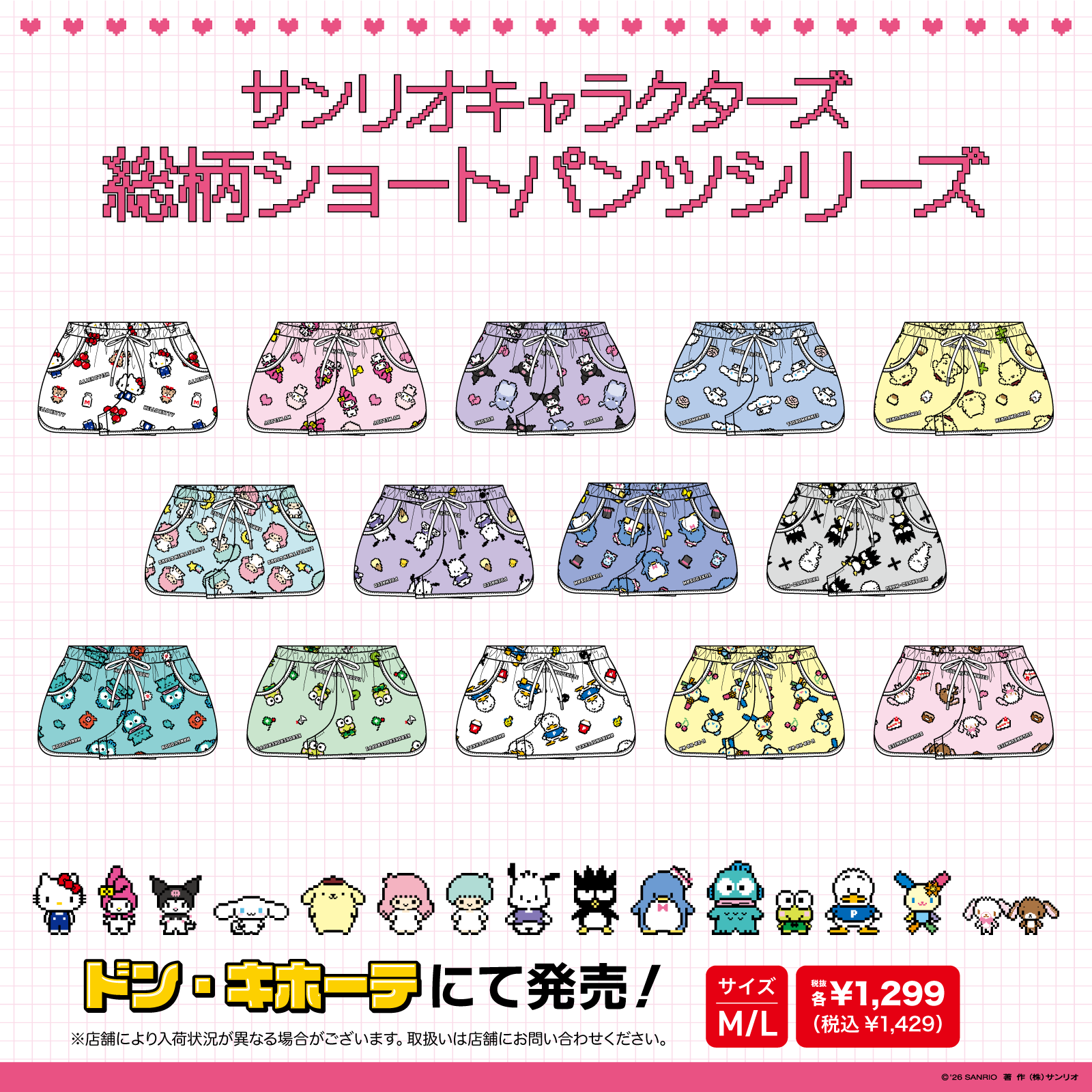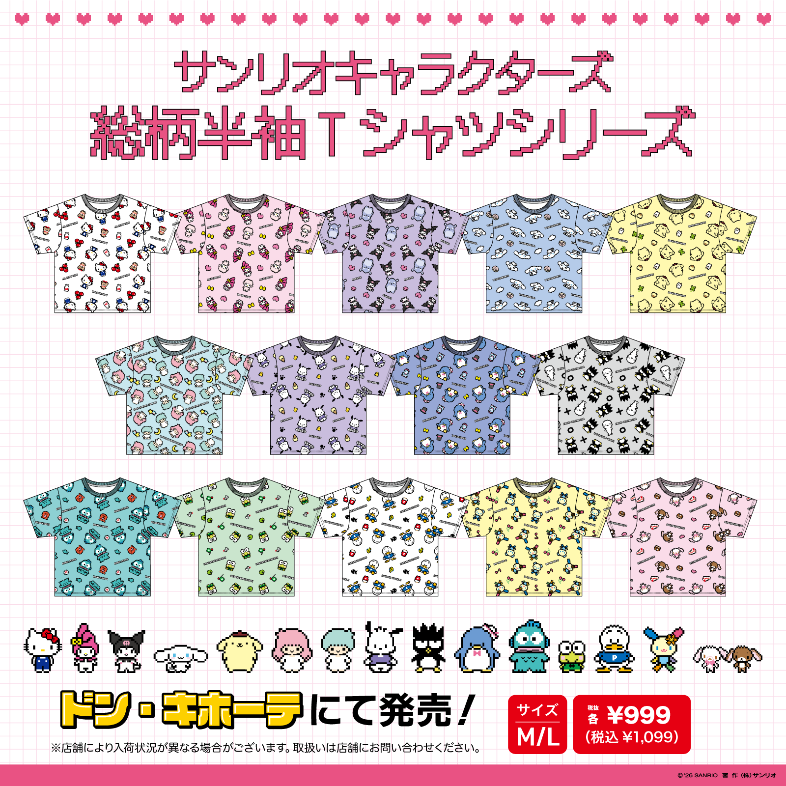 キャラクターラインナップ(全14種・アイテム共通) ハローキティ、マイメロディ、クロミ、シナモロール、ポムポムプリン、リトルツインスターズ、ポチャッコ、バッドばつ丸、タキシードサム、ハンギョドン、けろけろけろっぴ、あひるのペックル、ウサハナ、シュガーバニーズ