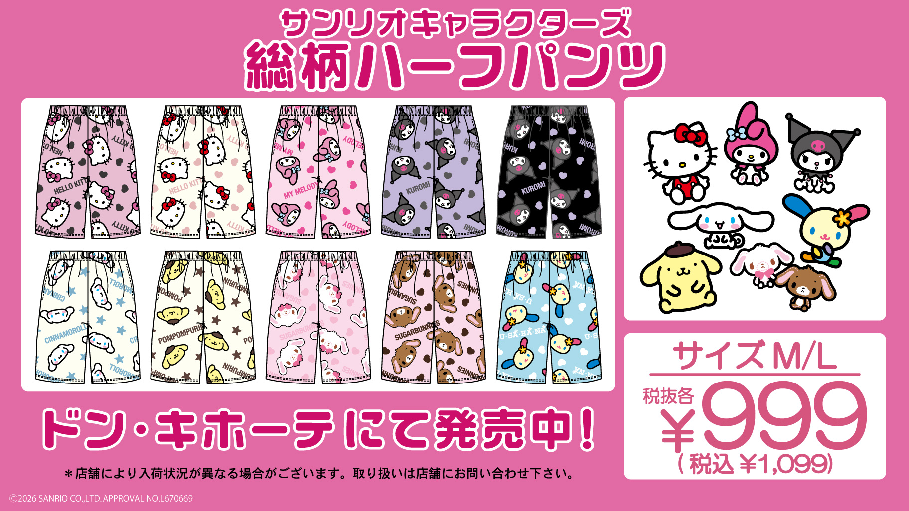 サンリオキャラクラーズ 総柄ハーフパンツ