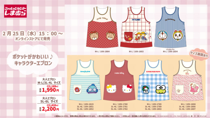 ハローキティ、マイメロディ、シナモロール、ポムポムプリン、クロミ、リトルツインスターズ、ポチャッコ