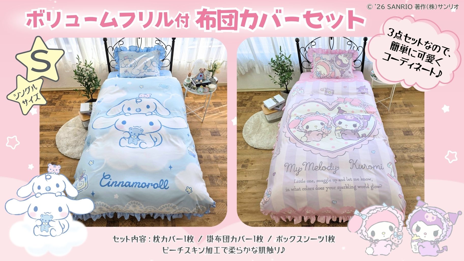 キャラクターインテリアファブリックショップ「OSUM(オーサム)」から、シナモロールとマイメロディ&クロミの布団カバー3点セットが登場☆