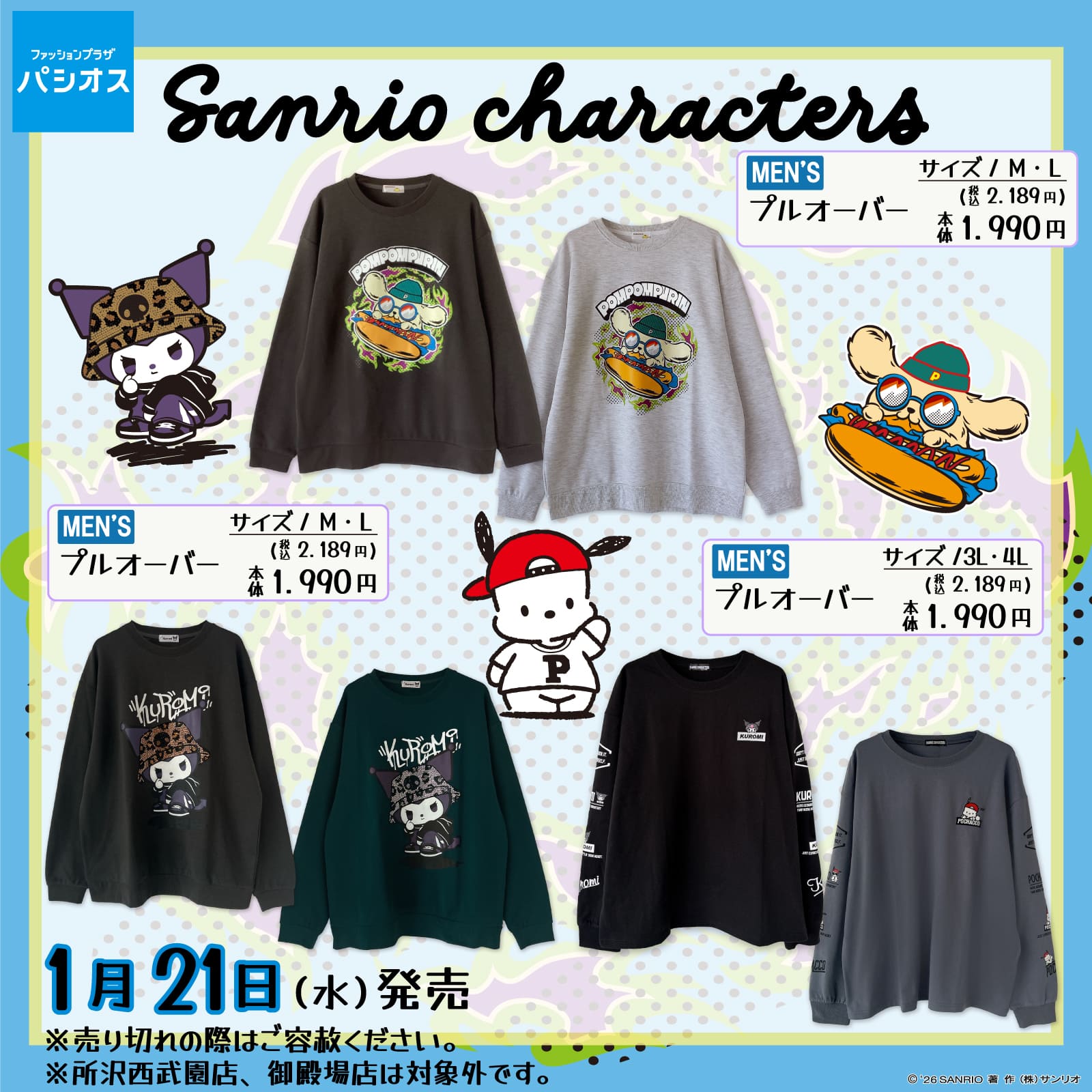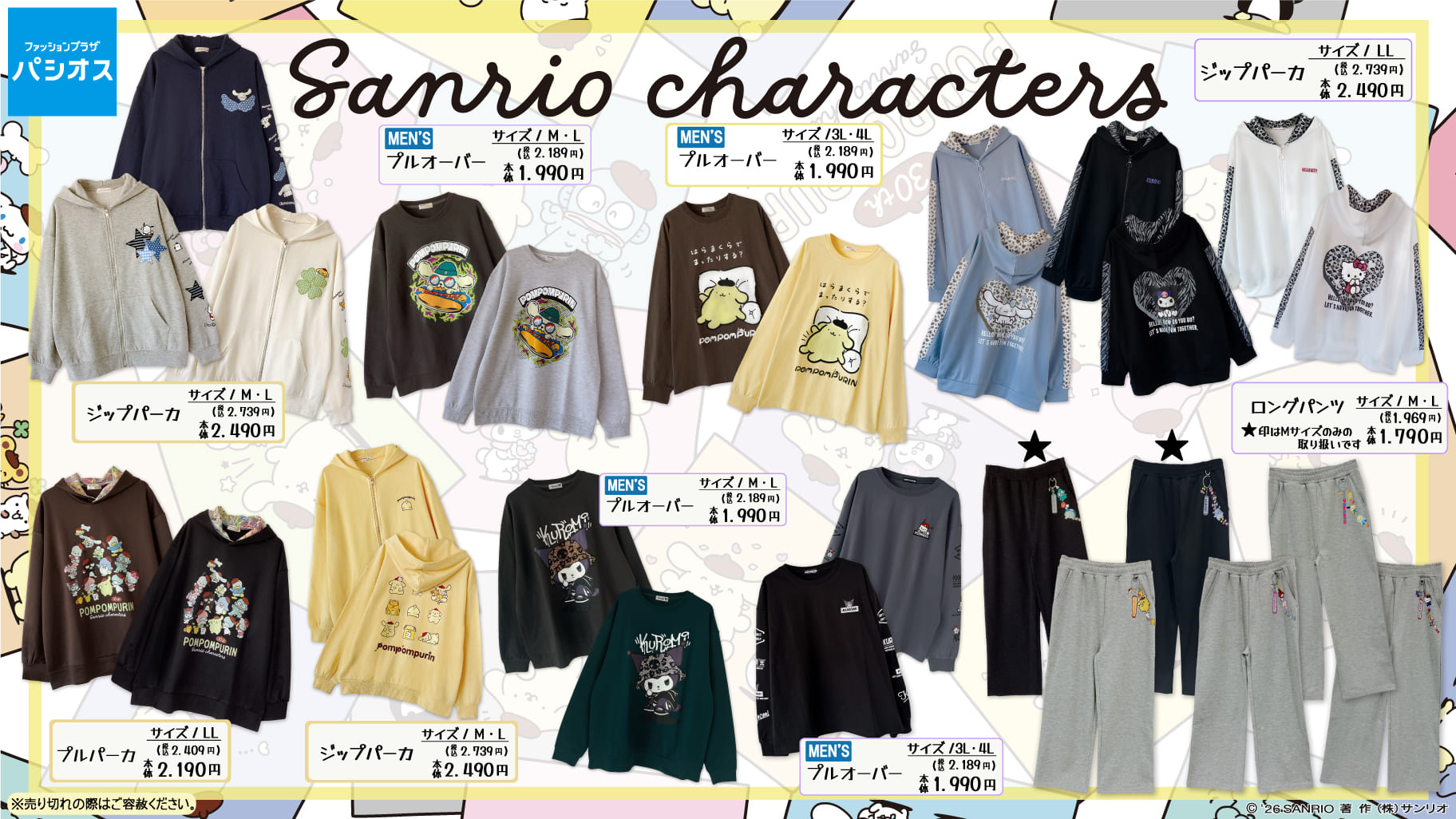 全国のパシオス店舗と公式オンラインストア「パシオスNet」に、サンリオキャラクターズの新作アパレルが登場!