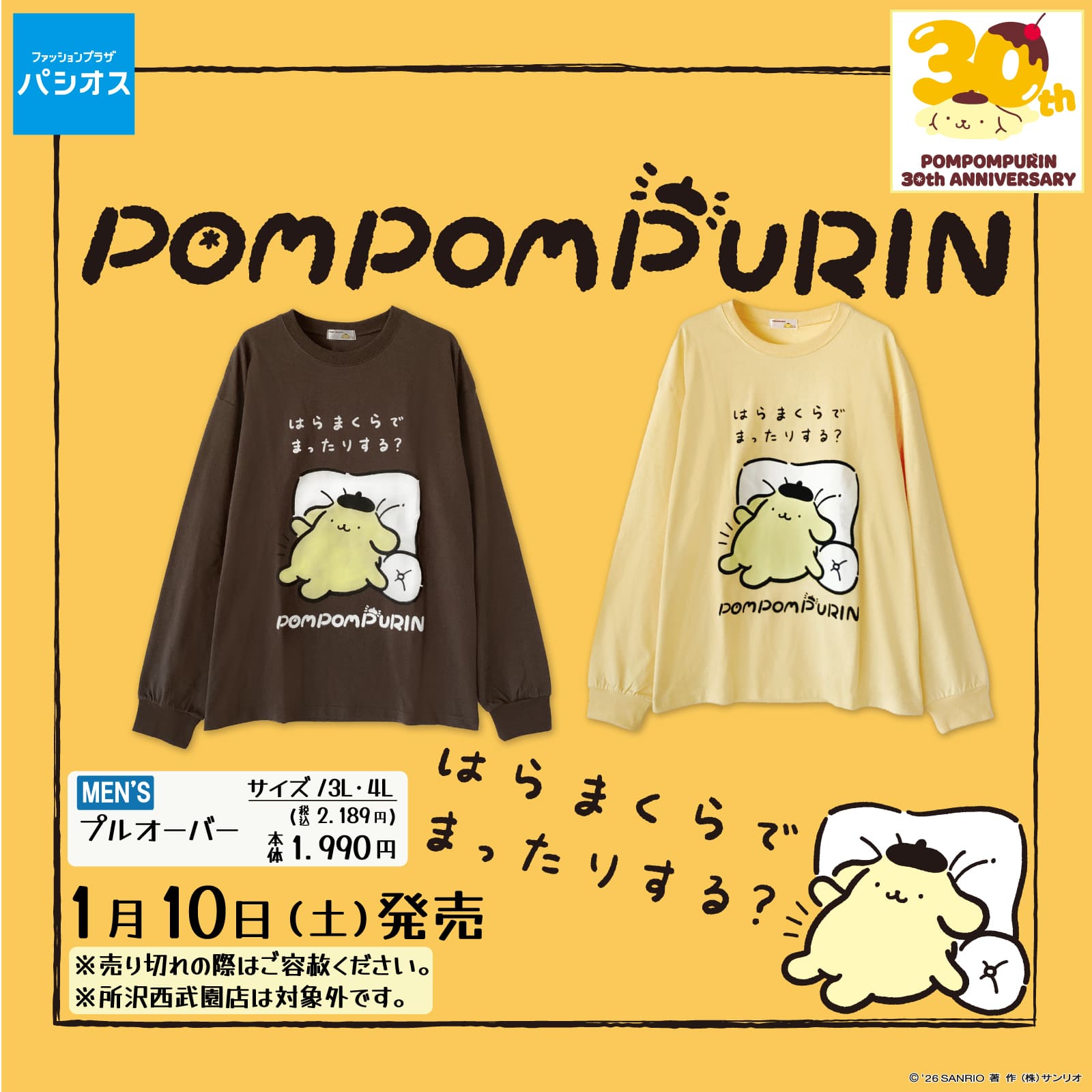 30周年を迎えるポムポムプリンのメンズアイテムにも注目だよ♡
