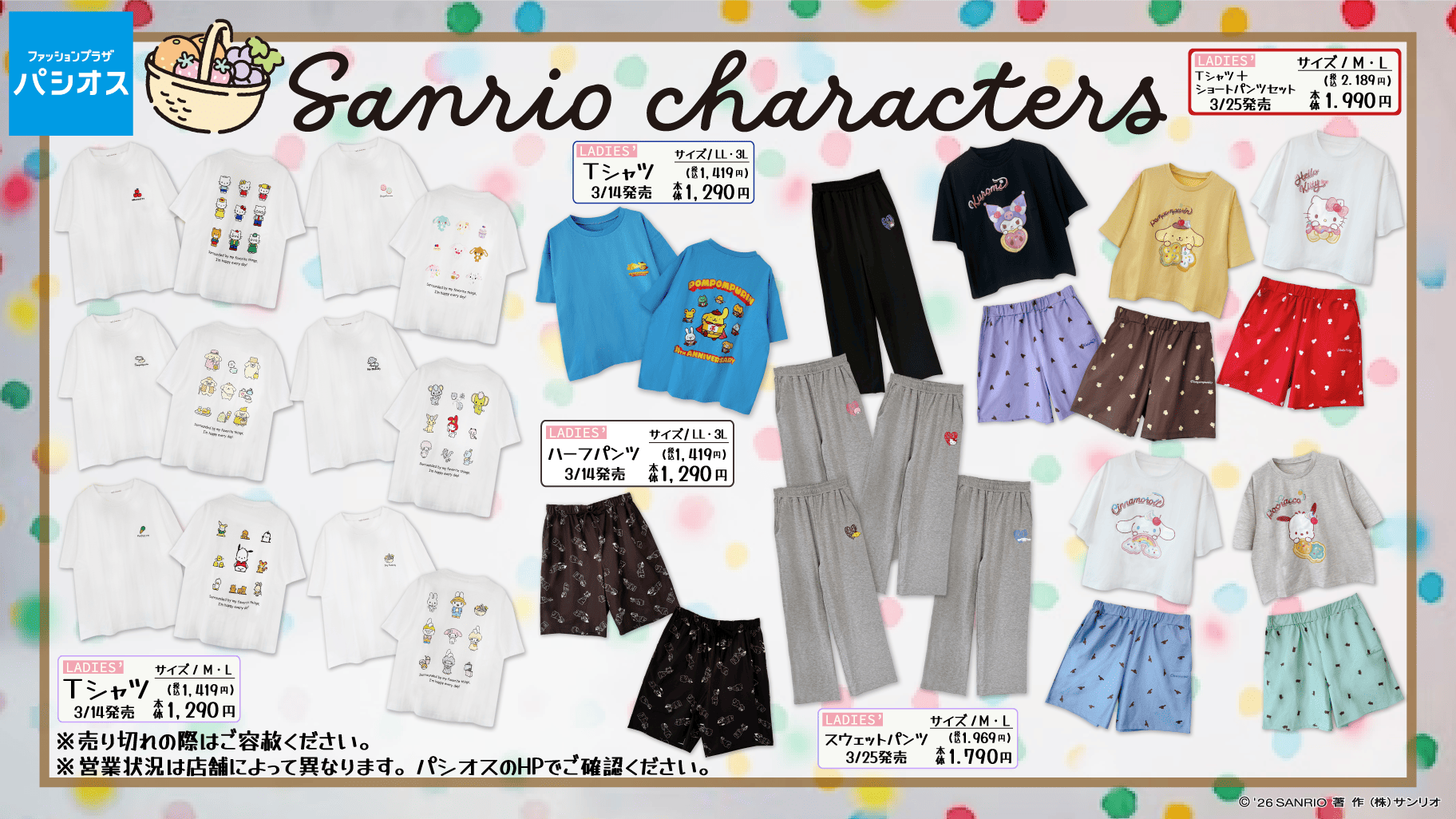 パシオスからサンリオキャラクターズのTシャツやパンツが登場♪