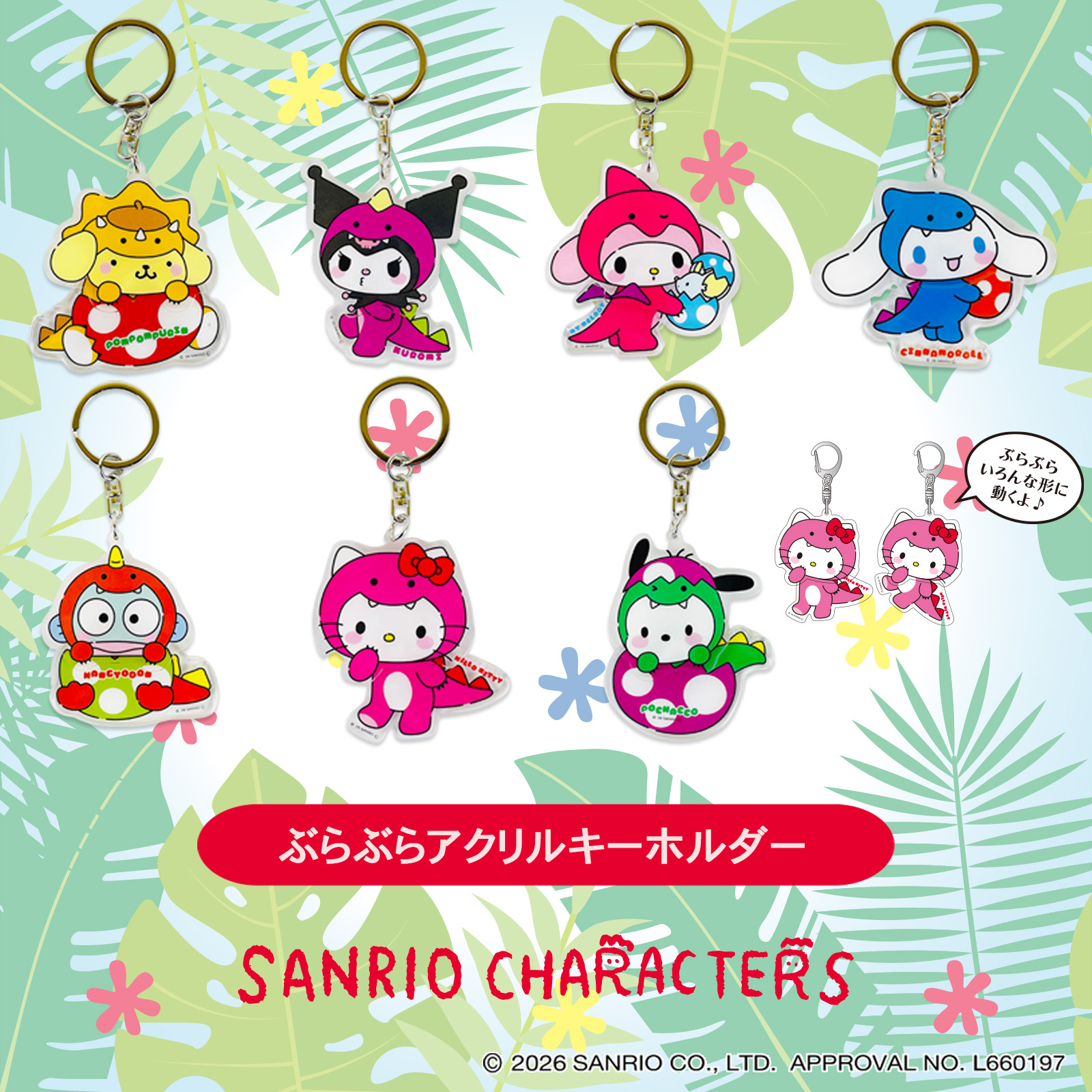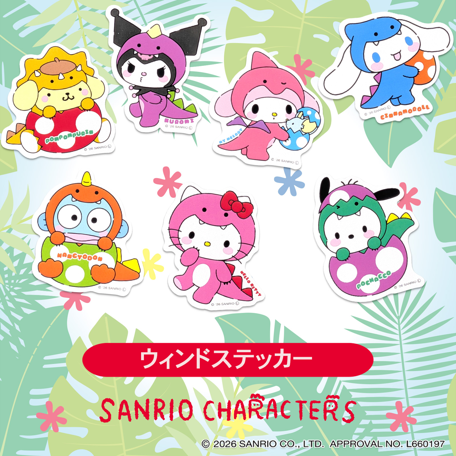 ポップでカラフルな恐竜モチーフに、キャラクターたちの愛らしさをプラスしたデザインだよ♡