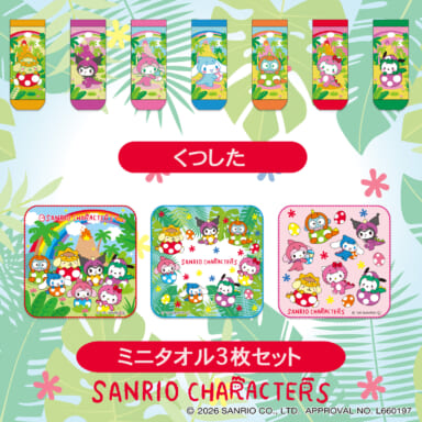 キーホルダー、ステッカー、靴下、ミニタオルがラインナップ。