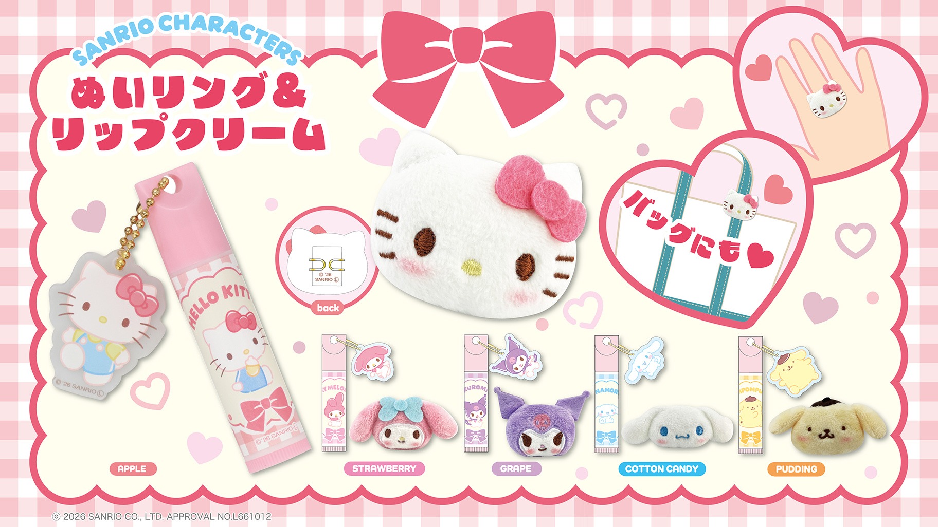 粧美堂から、サンリオキャラクターズの「ぬいリング&リップクリーム」が登場!