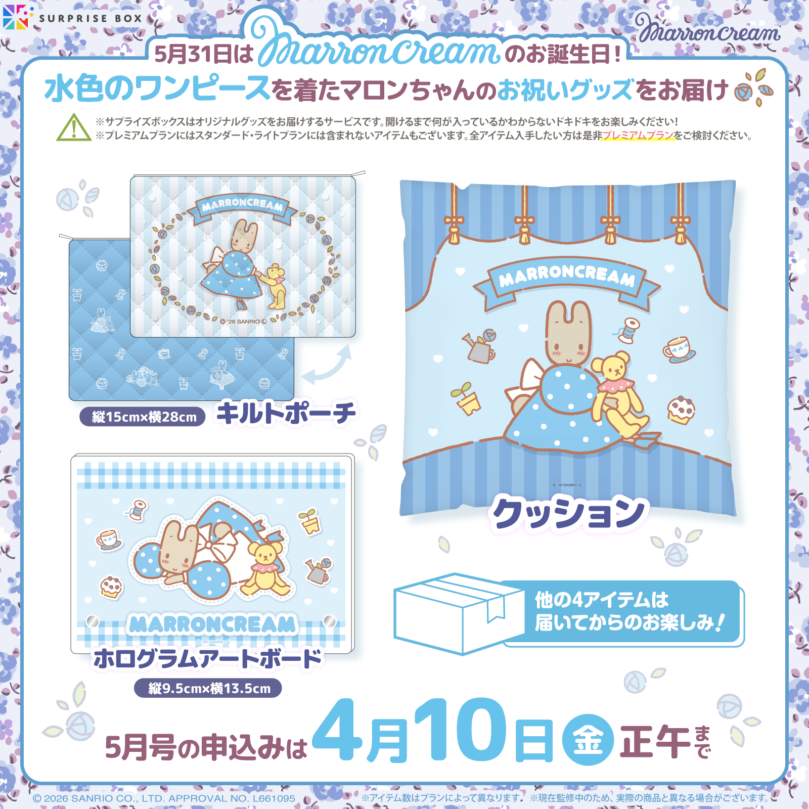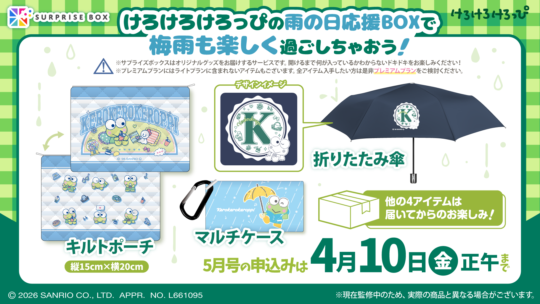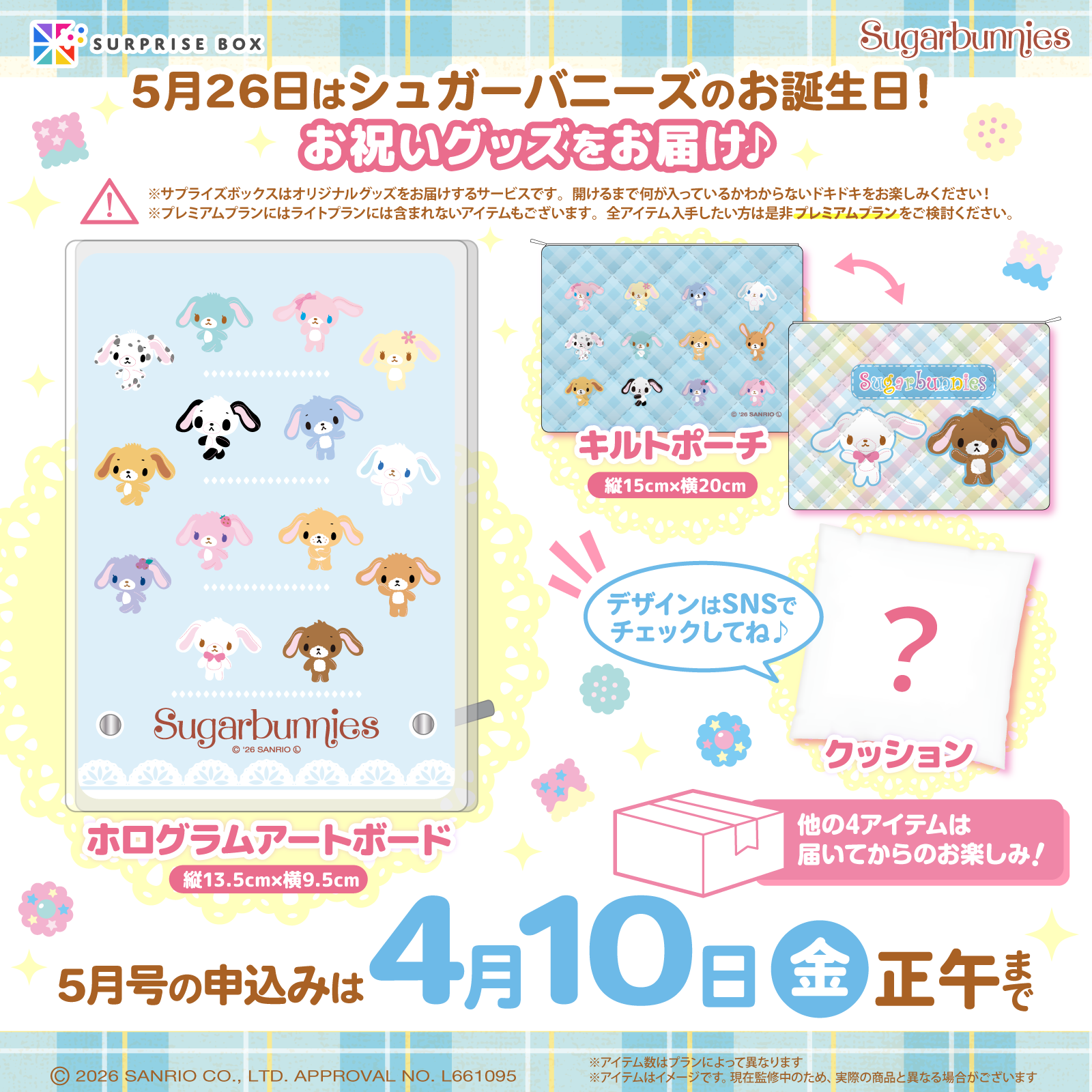 グッズのサブスクリプションサービス「サプライズボックス」で、サンリオキャラクターの5月号を申し込み受付中!