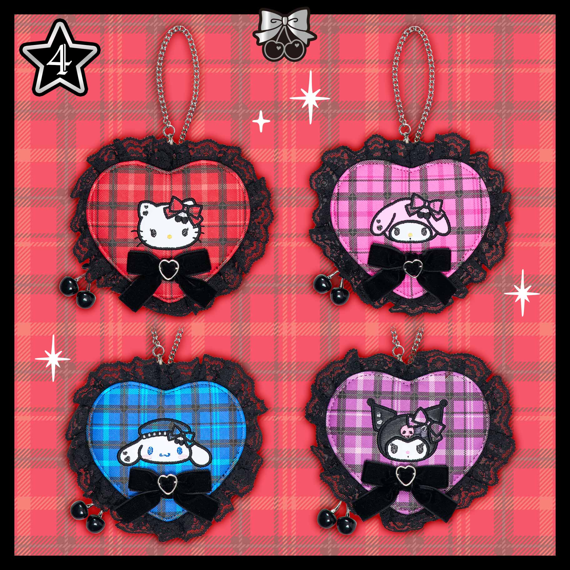 チェック柄にシルバーチェーンやブラックチェリーのモチーフを合わせ、ガーリーでロックなスタイルを演出!