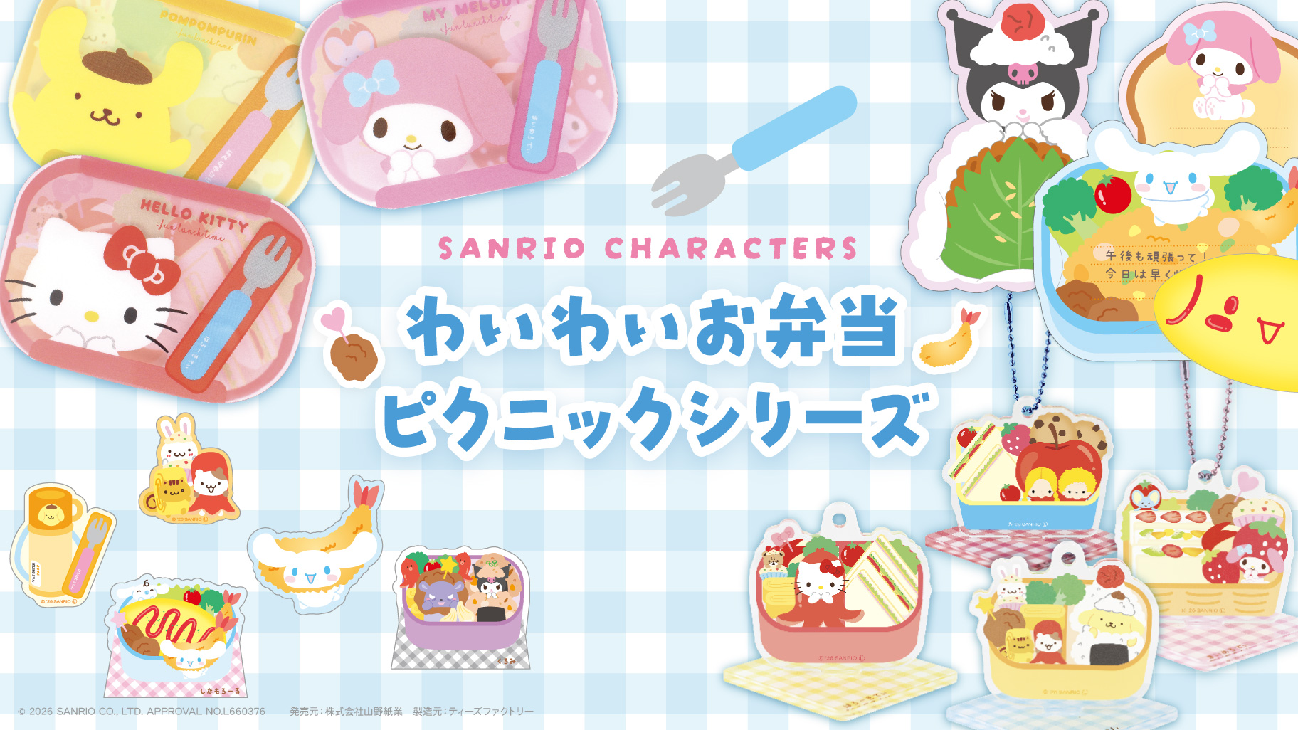 ティーズファクトリーから、サンリオキャラクターズの「わいわいお弁当ピクニックシリーズ」が登場したよ!