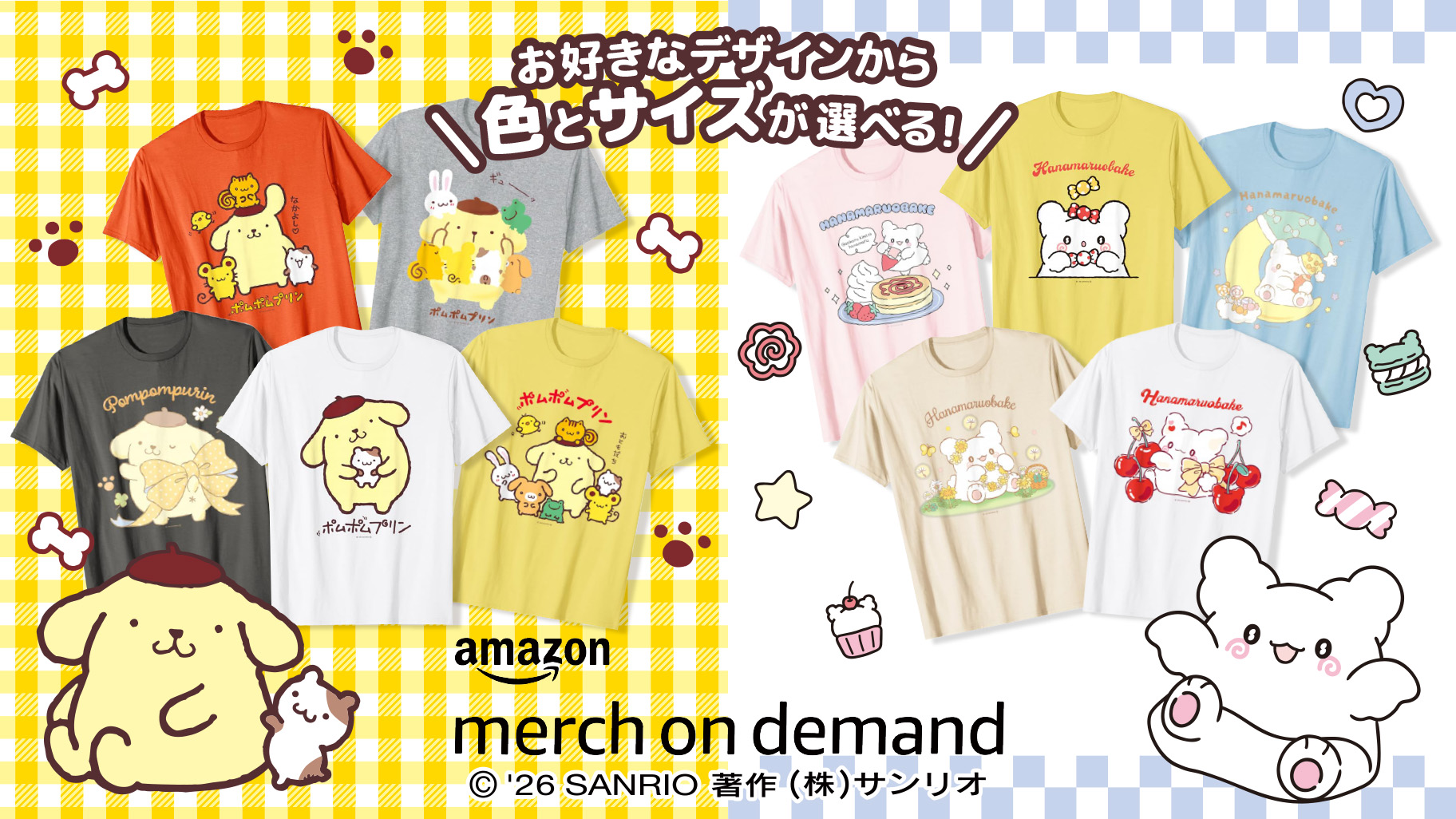 「Amazon Merch on Demand」にポムポムプリンとはなまるおばけの新作アパレルが登場!