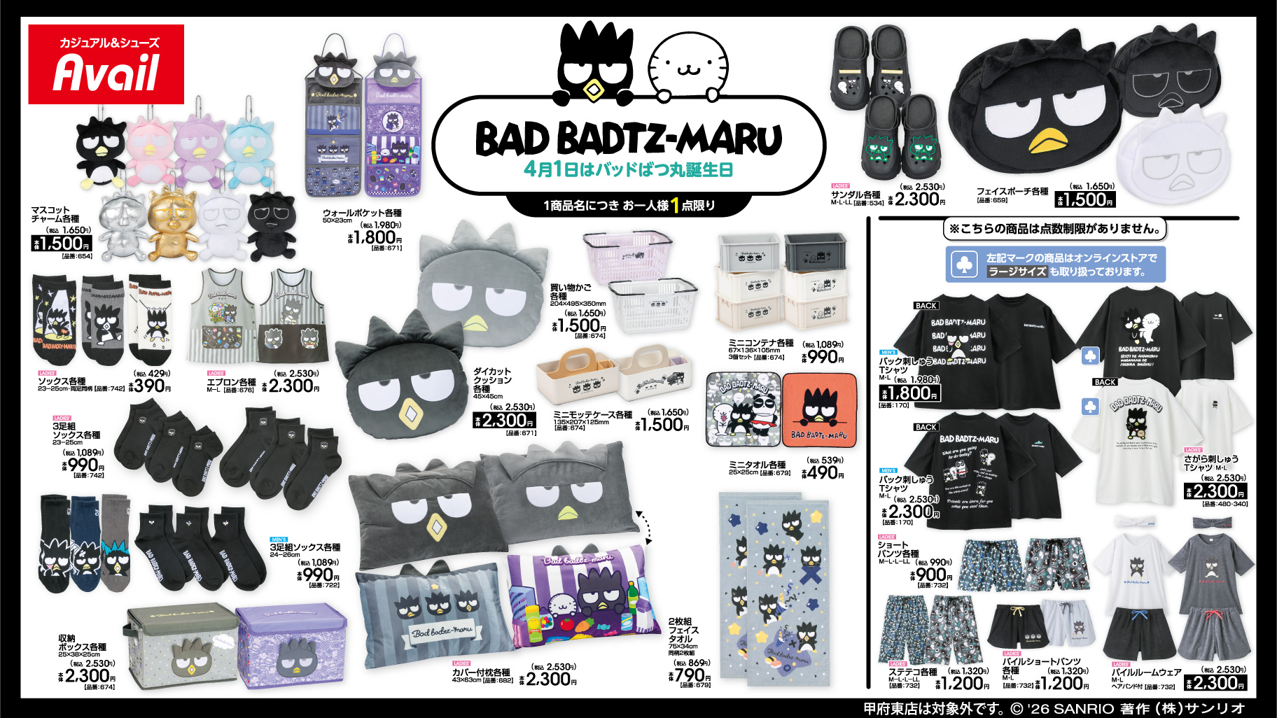 3/28(土)~アベイルにバッドばつ丸の新作アイテムが登場!