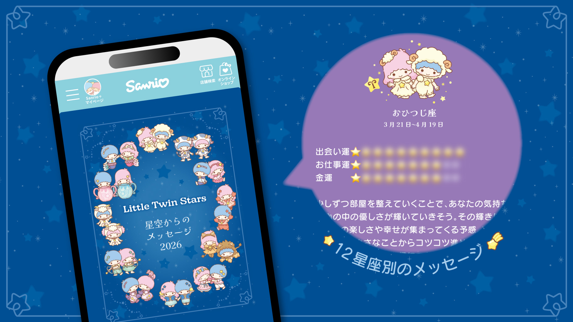 ※こちらのコンテンツは、12月4日(木)以降サンリオショップで配付したステッカー裏面の二次元コードからアクセスできる「LittleTwinStars 星空からのメッセージ2026」のSanrio+会員限定スペシャルバージョンです。