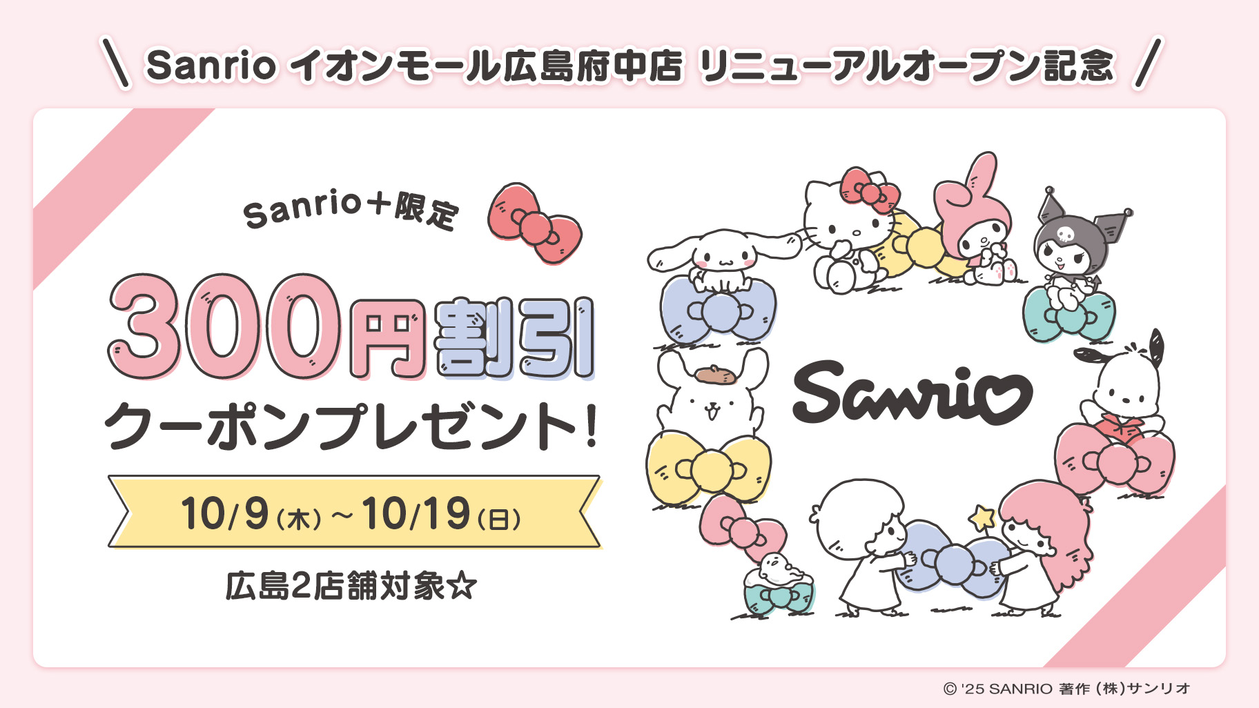 Sanrio+会員限定で「【広島2店舗対象】300円割引クーポンプレゼント」キャンペーンを実施♪