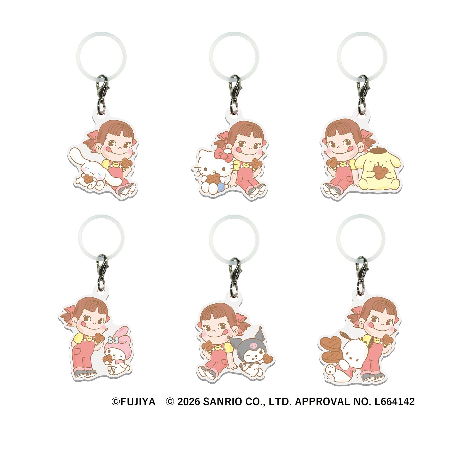 コラボ商品を2点以上お買い上げで、PEKO×サンリオキャラクターズ アクリルチャーム(全6種)を1個プレゼント!
