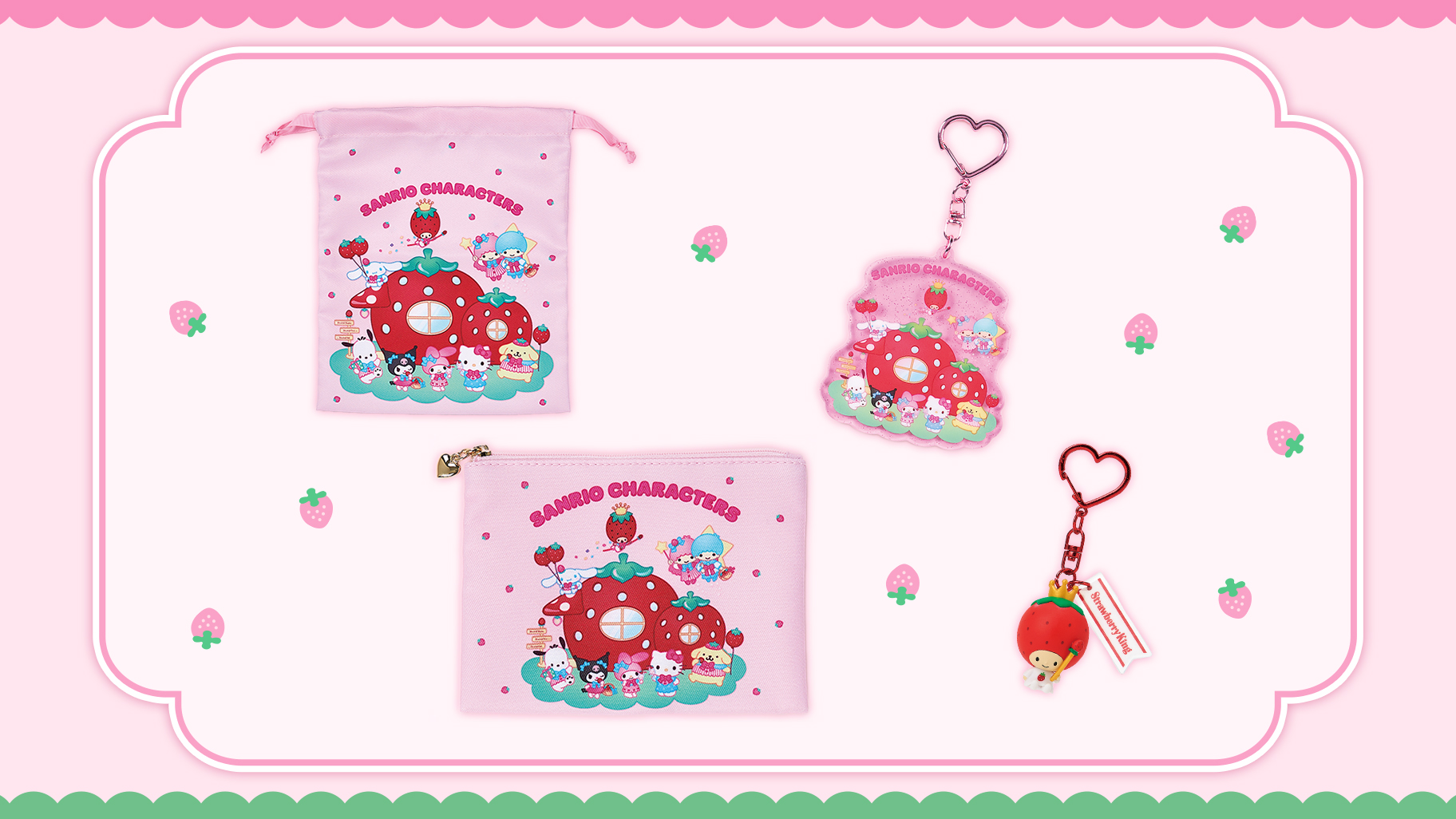 いちごのお家をモチーフにした、いちご新聞オリジナルデザインのグッズだよ♡